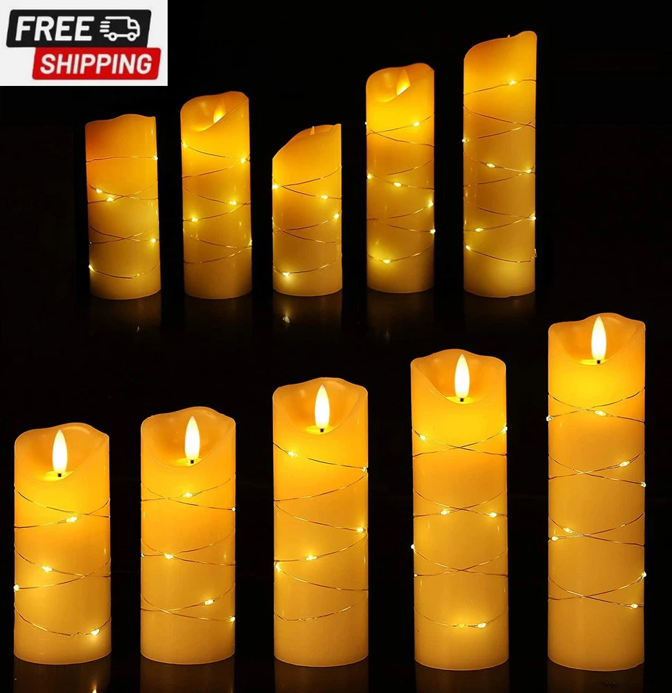 Green LED Flameless Candle with Embedded Star String, 3+4-Piece Set of LED Candles, with 11 Button Remote Control, 24-Hour Timer Function, Flashing Flame, Real Wax, Battery Powered. ✔New embedded starlight string technology: each candle is wrapped in a silver filament lamp. These light strings consist of 12 to 16 LED fairy lights to provide small, bright dots and a unique and charming appearance. ✔ Realistic flame simulation technology: dancing flames, they will flicker and dance like traditional flame candles. The LED emits light and can be used safely around children and pets. LED candles will not really catch fire, and there is no need to worry about fire-related accidents. Each candle is powered by 2 AA batteries (not included) (requires advanced batteries) ✔10-key remote control: Press the NO button twice to independently control the starlight string. After setting the timer, light the candles at the same time every day for 2 hours/4 hours/6 hours/8 hours (with dual remote controllers) ✔ Real wax (ivory color): Compared with plastic candles, pure wax can produce a softer and more natural luster. These ivory candles are 5 inches, 6 inches, 7 inches, 8 inches, and 9 inches (2.2 inches in diameter), and each set has 5 stepped cylindrical candles. ✔ First choice for modern decoration: these decorative mobile wick candles can be widely used for birthdays, Christmas, home decorations, bars, hotels, parties, holidays, weddings or other occasions. The setting atmosphere of flameless dancing flame: DANIP 5-piece LED embedded light string candle set defines the atmosphere of any room with soft LED lights, flame simulation technology, they will flash and dance like traditional flame candles, but there is no dripping wax, smoke or soot. Add atmosphere and enjoy new conveniences. Embedded light string technology: Each candle is surrounded by bright and delicate light. Wrapped in a silver-finished light string, this is a unique aesthetic effect that combines the appearance of a fairy lamp with the classic beauty of a real flame candle, showing a classic and noble atmosphere. Powerful 10-key remote control: Press the NO button twice to independently control the starlight string. After setting the timer, light the candle at the same time every day, the duration is 2 hours / 4 hours / 6 hours / 8 hours feature: Dancing flames Built-in light string Real wax, bring soft and natural luster Five-tiered pillar candle Each candle requires 2 "AA" batteries (not included) Package Contents: 2 remote control A copy of the manual One 2.2x 5 inch pillar candle One 2.2x 6 inch pillar candle One 2.2 x 7 inch column candle One 2.2 x 8 inch column candle One 2.2 x 9 inch column candle note: eusable battery power, you can reuse them again and again, when you think the starlight and flame light is not bright enough, please replace the new battery. The effect is also excellent. Five-column candle is packed with a protective film, which can protect the candle from dust and make the candle look more noble and bright. When you are really inconvenient to use, you can tear the packaging film without affecting the appearance and effect of the product. Shipping Fast shipping is very important for us. Our standard US shipping service is FREE. Your order will be shipped within 2-3 business days upon full payment received. Your order will be delivered within 2-3 business days after the handling time. We only ship to the confirmed PayPal address. We reserve the right to cancel any order for any reason at any time. We are not responsible for undeliverable addresses. Returns and payment We offer a 30 days return policy from checkout winning date. We allow only PayPal as payment method FeedBack Your feedback very important to us, after you get your package and you are satisfied with our service please leave us positive feedback If you have any problem with your order / any questions please before leave any type of feedback For any questions, using eBay contact system Please visit our eBay store to check out other items for sale! Thank you for shopping at our store.