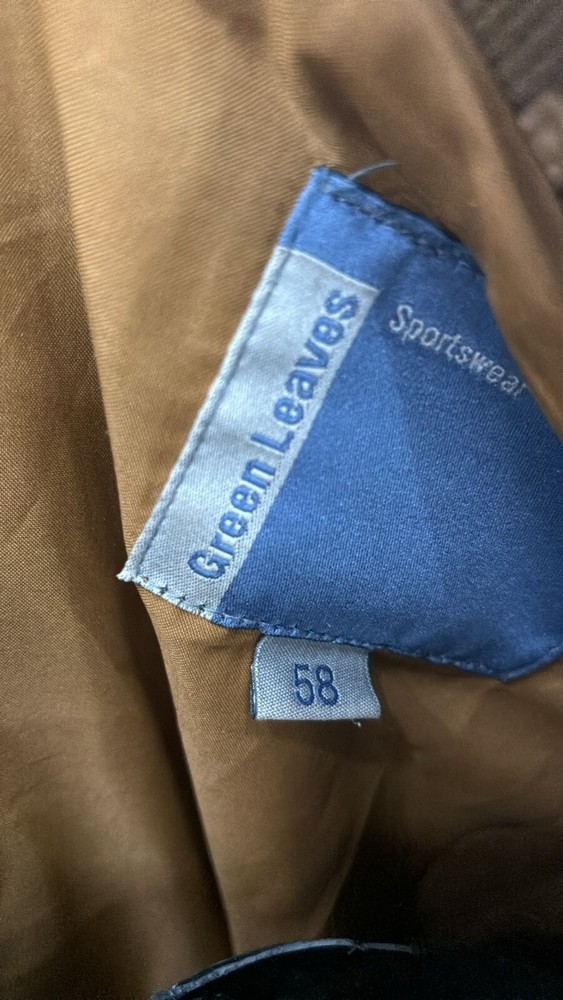 Department:manColor:BrownOuter Shell Material:Leather/ReindeerClosure:ZipperSize:58UPC:Does not applyStyle:JacketSize Type:RegularBrand:Green LeavesVintage:Yesgtin13:Does not applyType:Jacket