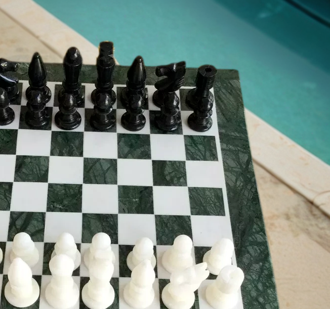 Product Information Type: Chess Top Size: 15x15 Inches Shape: Square Color: Green About Product Introducing our exquisite marble chess set, a timeless addition to any game collection. Crafted with precision and elegance, this set showcases the natural beauty of marble, with each piece meticulously carved and polished to perfection. Elevate your loved one's game room with our exquisite marble chess table, the perfect personalized gift for him. Crafted with high-quality marble, this luxurious table is not only a functional piece for playing chess but also a stunning decorative item that adds sophistication to any space. The personalized touch makes this gift even more special, allowing you to engrave a name, date, or message on the table to create a unique and thoughtful present that will be cherished for years to come. Surprise him with a gift that combines elegance, functionality, and sentimentality with our marble chess table. What is inlay Art? One of the most attractive work of art that comes from marble is"Marble Inlay" work. It is the same work that adorns the Taj Mahal and other Mughal monuments. It is a closely protected traditional art and only a few expert exponents are available today. The delicate process involves cutting and engraving marble shapes manually. To start with, a predefined pattern e.g., floral design or geometrical design is engraved on the marble slab. Small pieces of marble of different shades are cut delicately to fit in these grooves precisely. These small pieces are then slipped in the grooves. Apart from marble, many other materials can also be used. Kindly Not Any type of leg / base who shown in picture is not included with this product, if you want to separate please contact us. The table shown in picture is custom made product. We made same as listing product for you. Thanks for visiting......