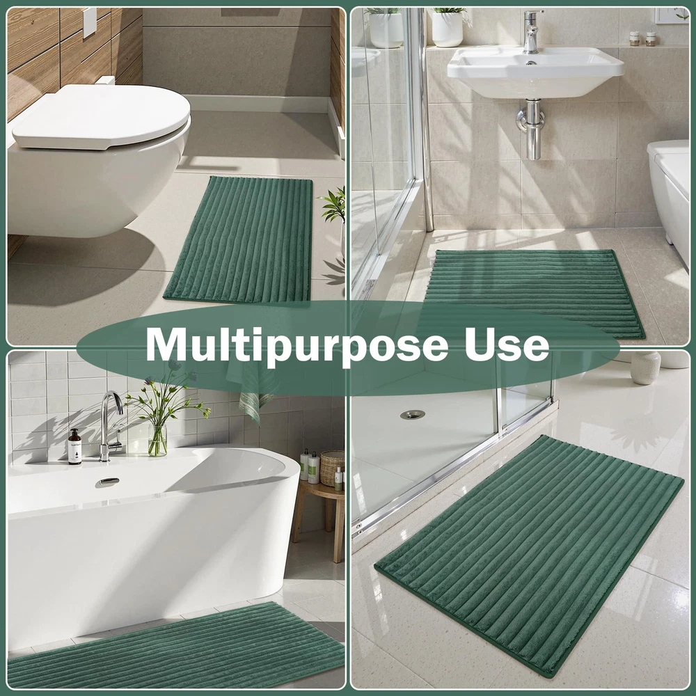 A stylish bathroom rugs give your home decor a new look. Vintage, classic, and charming, this bathroom rug of ours comes in a variety of sizes and colors to match your space's decor. It will be a good choice when you are looking for a bathroom rug that will bring a modern artistic decoration to your bathroom, warmth and excellent comfort for your feet! Why is it good for bathroom rugs? Imagine a lovely, uniquely designed bath mat in your bathroom, stepping out onto a cloud-like, cozy rug, and having your feet wrapped in warmth. Cleaning a floor mat is undoubtedly a hassle, but with this, a tough and easy-to-clean mat will take the worry out of it, and it's machine washable or hand washable! If you live with children or the elderly, the first thing you want to do when choosing a bath mat is to prevent slip problems. This non-slip bath mat solves that problem. The plush material allows it to absorb moisture quickly, so your feet will be dry and your floors won't be wet after your bath! Anti-Skid Rubber Backing: Unlike ordinary TPR material, the rubber backing has a higher anti-slip effect to hold the mat in place to protect you and your family. Use on a clean, dry, flat surface where water underneath the rug can make it slippery Ultra Soft & Aesthetic Design: Striped embossed design makes your home decoration modern and beautiful, soft plush makes your feet say goodbye to cold and rough floors, enjoy the cozy and warm feeling Quick Dry & Water Absorbent: The surface made of microfiber material ensures that you step on the dry and cozy plush mat after showering or while getting ready at the sink, allowing your feet to dry fast and preventing the floor from dripping Easy to Clean: The texture is tough and not easy to peel off, it can withstand multiple machine or hand washes and the color will not fade after washing. Tips Wash with cold water and neutral detergent, hang dry or tumble dry at low temperature Multipurpose Use: Available in a variety of sizes, whether it's near a bathroom entrance, bathtub, sink, toilet, bedroom, laundry room or hallway, the bathroom mat seamlessly blends in and completes the look of any space to brighten up your home