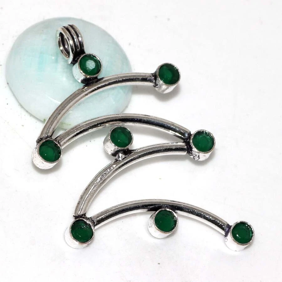 Green Onyx 925 Silver Plated Gemstone Pendant 2" Valentine Gift Jewelry JW