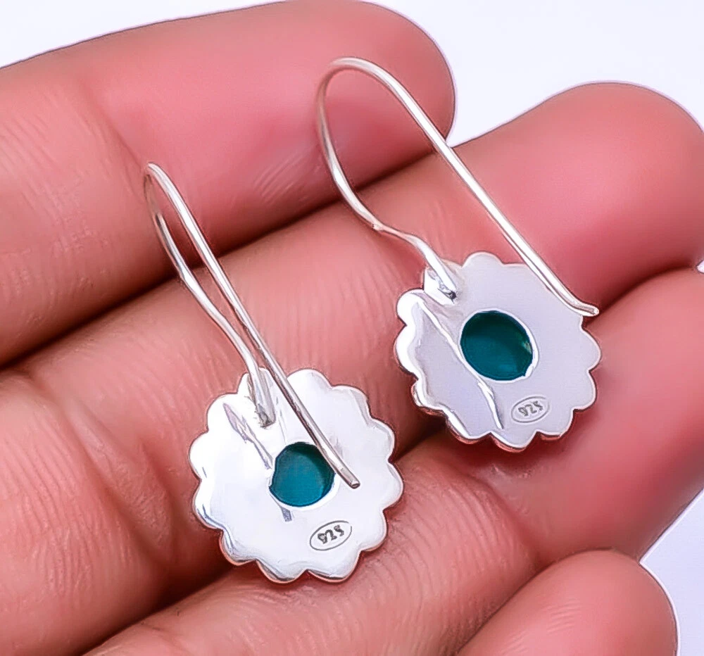 Setting Style: Bezel Features: Engraved, Nickel-Free, Handcrafted Customized: No Main Stone Length: As Seen in Picture Theme: Beauty Diamond Clarity Grade: Not Applicable Item Length: 1.17 Metal Purity: 925 Parts Per 1000 Main Stone Size: 8X8 Mm Gemstone Clarity Grade: Opaque Total Carat Weight: 22 Type: Earring Item Diameter: As Seen in Picture Brand: Unbranded Main Stone Width: As Seen in Picture Main Stone Treatment: Lab-Created gtin13: does not apply Metal: Sterling Silver Color: As Seen in Picture Main Stone: Green Onyx SKU: E_9325_112_27 Main Stone Creation: Lab-Created Colored Diamond Intensity: Not Applicable Base Metal: Sterling Silver Country of Origin: United States Style: Drop/Dangle Seller Warranty: Yes Ear Area: Lobe Main Stone Depth: As Seen in Picture Country/Region of Manufacture: India Main Stone Color: Green Certification: 100% Genuine Guaranteed Antique: Yes Occasion: Christmas, Birthday, Anniversary, Engagement, Wedding, Valen Shape: As Seen in Picture Material: Gemstone, Stone Main Stone Shape: Round Handmade: Yes Number of Diamonds: As Seen in Picture UPC: does not apply Number of Gemstones: 2 Diamond Color Grade: Not Applicable