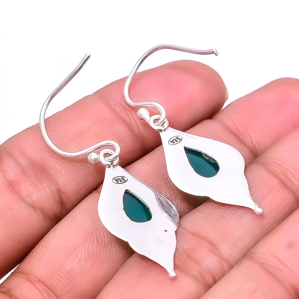 Theme Beauty Main Stone Depth As Seen in Picture Main Stone Length As Seen in Picture Main Stone Width As Seen in Picture Seller Warranty Yes Shape As Seen in Picture SKU E_9442_249_36 Main Stone Size 12X8Mm Antique Yes Handmade Yes Type Earring Style Drop/Dangle Metal Sterling Silver Metal Purity 925 Parts Per 1000 Base Metal Sterling Silver Total Carat Weight 20 Main Stone Green Onyx Main Stone Creation Lab-Created Main Stone Shape Pear Main Stone Color Green Main Stone Treatment Lab-Created Material Gemstone, Stone Number of Gemstones 2 Item Length 1.76 Features Engraved, Nickel-Free, Handcrafted Ear Area Lobe Brand Unbranded Country/Region of Manufacture India Country of Origin United States Color As Seen in Picture Diamond Clarity Grade Not Applicable Number of Diamonds As Seen in Picture Item Diameter As Seen in Picture Gemstone Clarity Grade Opaque Diamond Color Grade Not Applicable Customized No Colored Diamond Intensity Not Applicable Certification 100% Genuine Guaranteed Setting Style Bezel Occasion Christmas, Birthday, Anniversary, Engagement, Wedding, Valen Shipping & Handling - Charge - 1st item-5.90 And Additional item-1.90 Handling Time - 1 Days . Delivery Time - 2 TO 3 DAYS. Shipping Service - USPS First Class Package 2 -3 Days. Returns - 1.We offer a 100% Money Back Guarantee minus shipping for 30 days after receiving the Item / item's. 2..The item must not be altered or damaged in any way shape or form. 3.Upon receiving these items your payment will be refunded. 4.Email us for return instructions before sending merchandise back. 5.Please allow up to 1 business day for all returns to receive credit. 6.Sizing does not affect the return policy. Payment - We accept PayPal for Payment ,should made with in 14 days once buying or winning done , in case of late information expected .
