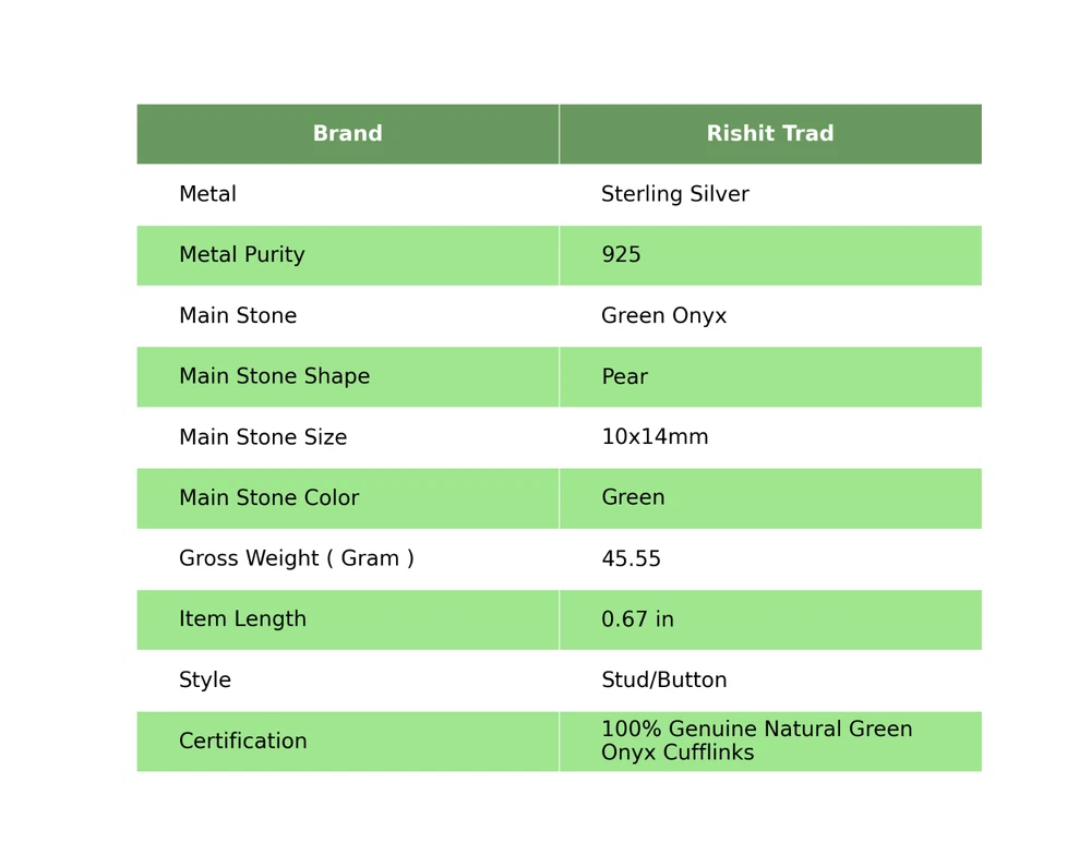 Beautifully adorned with Green Onyx and handmade vintage design, this Cufflinks will definitely grab attention. Pair it with any of your regular or special attire and let everyone appraise your sense of style. ---------------------------------------------------- ------------ Welcome to Our Shop Rishittrad ---------------------------------------------------- ------------ Description:- SKU :- CL-5-19 Metal :- Sterling Silver Metal Purity :- 925 Gemstone :- Green Onyx Gemstone Color :- Green Gemstone Shape :- Pear Gemstone Origin :- Setting :- Channel-Set Cufflink Lenght : - 0.67 Inches ---------------------------------------------------- ------------ -------- ------------ Elegant Birthday Tribute:- Discover the essence of sophistication with our Birthday Radiance collection. Crafted with exquisite attention to detail, each piece embodies the timeless elegance and symbolic significance of birthdays. Craftsmanship Excellence:- Meticulously fashioned from premium 925 sterling silver, our jewelry pieces boast a classic and enduring design. The rich tones of natural gemstones complement the silver setting, creating a captivating harmony that resonates with wisdom and truth. Symbol of Personal Growth:- Gift with intention and meaning. Our Emblem of Wisdom pieces symbolize heartfelt wishes for personal growth and enlightenment on the recipient's special day, making it a cherished gesture of love and appreciation. Versatile Elegance:- Measuring at 1.2 inches, our creations seamlessly blend into any ensemble, offering both daily wearability and the ability to elevate sophisticated looks for special occasions. Their adaptable design ensures they become treasured additions to any jewelry collection. Thoughtful Expression of Love:- Surprise your beloved with a gift that transcends mere adornment. Our Natural Gemstone 925 Sterling Silver collection is a stylish and thoughtful token, exuding elegance and emotion while conveying warmest wishes with enduring grace. Exquisite Presentation:- Delight in the joy of gifting with our meticulously presented pieces, elegantly housed in an exquisite gift box. Make their birthday truly memorable by presenting them with a gift that captures the allure and timeless elegance of sterling silver. -------------------------- Image Policy----------------------------- All images are captured in natural lighting. The product showcased is the exact item you'll receive. -------------------------- Delivery Policy-------------------------- Standard Shipping typically takes 15-25 days, depending on your location. For expedited shipping, additional charges will apply. --------------------------- Product Policy--------------------------- You will receive the exact product depicted in the photos. All items are meticulously handcrafted. ------------------------------ Order Policy------------------------------ We welcome orders from around the globe. Custom orders are also accepted. Bulk orders are available upon request. Should you have any queries about our products, please don't hesitate to reach out. Upon receiving your product, we'd appreciate your feedback. ⋆⋆✦✧✦⋆⋆⋆⋆✦✧✦⋆⋆⋆⋆✦✧✦⋆⋆⋆⋆✦✧✦⋆⋆⋆⋆✦✧✦⋆⋆⋆⋆✦✧✦⋆⋆⋆⋆✦✧✦⋆⋆ "Discover a captivating collection of handcrafted gemstone jewelry at our boutique." https://www.ebay.com/str/rishittrad0 ♥ Thank you for choosing us ♥