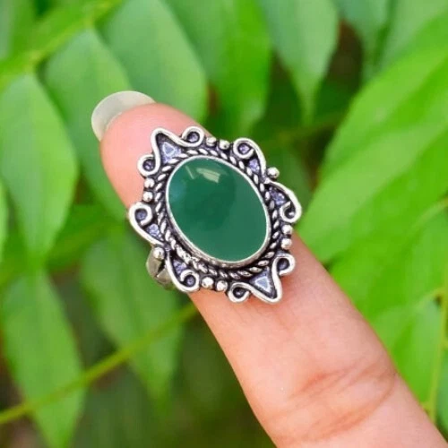 Green Onyx Silver Ring 925 Sterling Women Handmade Rings All Size