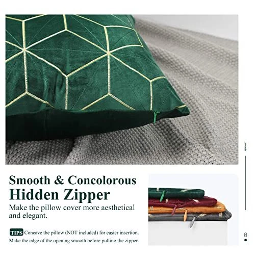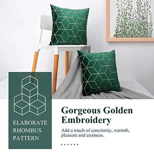Return Policy Fast Delivery Trusted seller Green Pillow Covers Soft Velvet Throw Pillow Case, 2 Pack Embroidery Cushion Covers Golden Lines Embroidered Rhombus Pattern Back Pillowcase for Car Sofa Bed 18"x18"(45x45cm), Dark Green Product Description Polyester Fiber,velvet Material: This dark green pillow cover made of premium polyester fiber material with velvet texture, it is extremely soft, smooth and comfortable. Perfect to give your family or friends this comfortable throw pillow case as a present. Craftsmanship and Unique Pattern: This throw pillow cover comes with bright and comfortable color, beautiful golden embroidery process and unique rhombus pattern, modern and gorgeous, which can match with all styles of furniture and decorations, and enhance the enjoyment of your life. Package Content: This cushion covers item have 2 Set of throw pillow covers only, pillow inserts are NOT included. Size: 18 x 18 inch / 45 x 45 cm. Flexible Usage: This green cushion covers a fashionable and functional throw pillow cover to use in your couch, bed, sofa, chairs, bedroom, car, office, or in hotel, cafe, restaurant, etc. Helping to refresh your throw pillows and bring comfort and coziness for you and your family. How to Care: Pillowcase wash in cold water by hand then hang to dry. Wash separately with white clothes. Shipping Returns Payment Shipping Shipping is FREE to all addresses other than APO/PO boxes in the lower 48 states. All our stock ships from US-based warehouses. Shipped via USPS or UPS (depending on location and package weight) Unless stated otherwise, all orders will ship within 24-72 hours of your payment being processed. Check our feedback to see the great reviews of FAST shipping we offer. Returns Seller does not accept returns Payment We currently accept payment via eBay managed payments only. Once payment is cleared, we will dispatch your shipment within 1-3 business days. Please refer to the "Shipping" tab for more information regarding shipping speed to your destination.