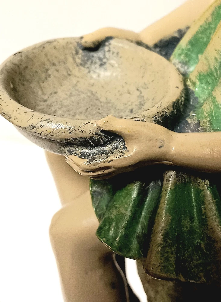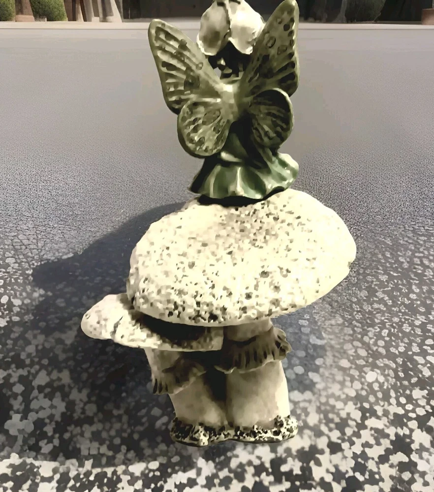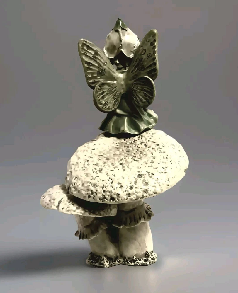 Green Resin 3 Mushroom Lucky Fairy Garden Room Angel. Measures approximately 11" H X 7" W X 5" D. Gently pre-loved good condition. She has minor hard-to-see thumb imperfections, which appear to be a manufacturer flaw or missing paint. See photos for close-up view. Weighs approximately 2.2 lbs. Can be used indoors or outdoors. She is absolutely stunning! I will ship with extra padding to ensure the integrity of the piece.