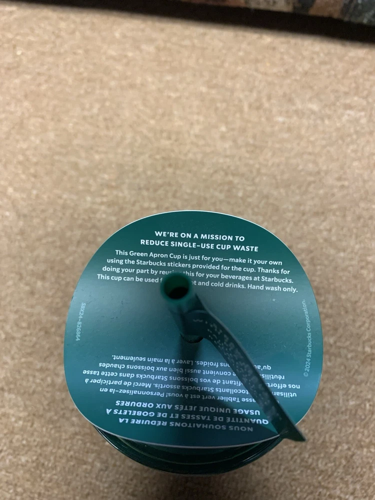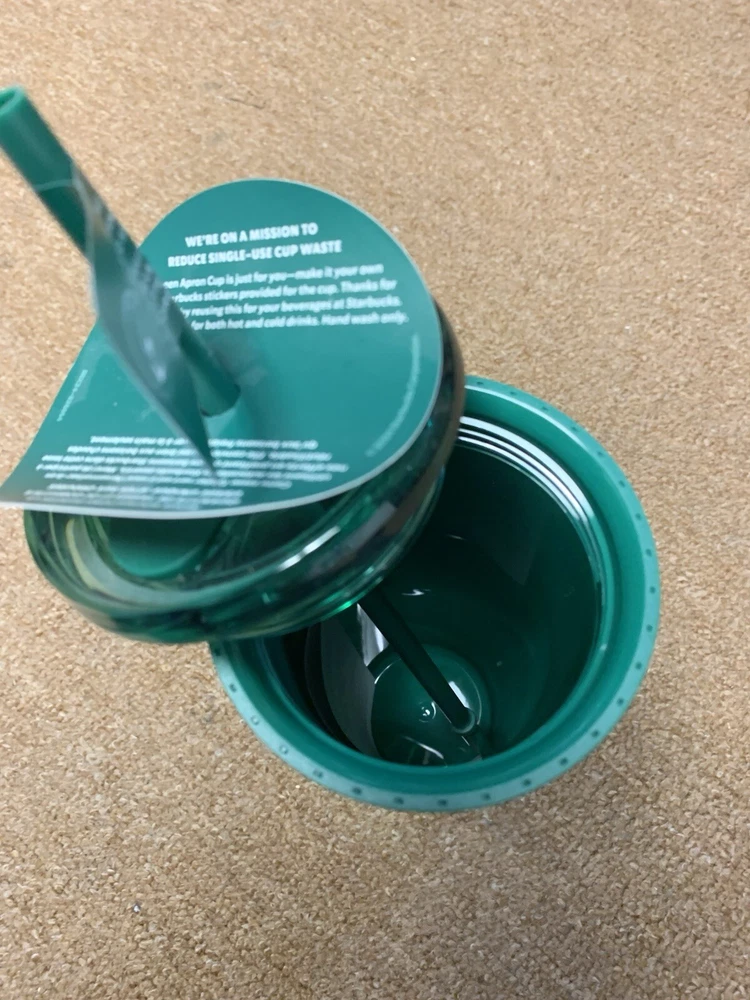 Green Reusable Starbucks Cup 24 oz. Hot or cold beverages. Barista green apron cup. Hand wash only