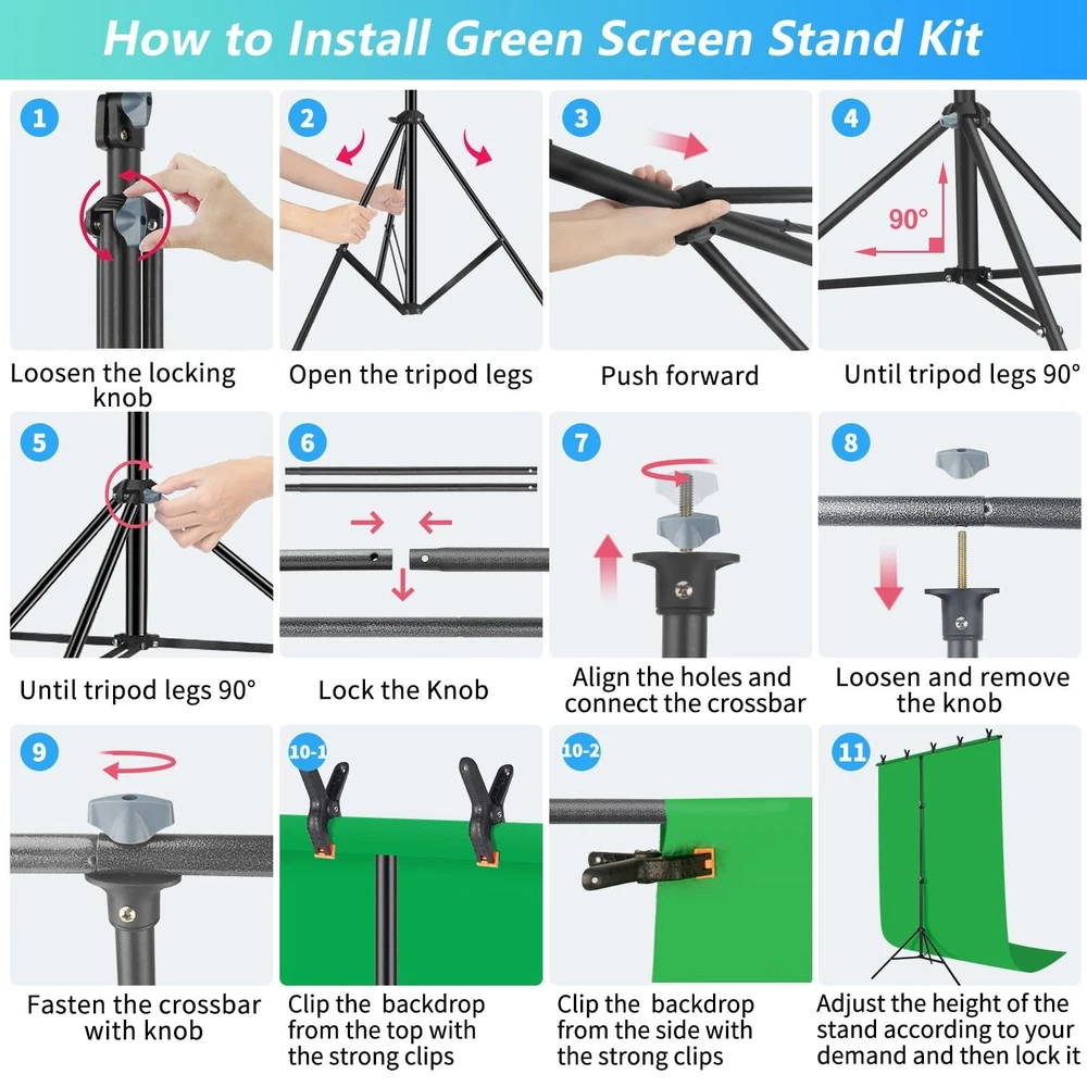 Green Screen Backdrop Kit with Stand, 5X6.5ft Portable Green Screen Backdrop with Stand kit, GreenScreen Background with Stand Carrying Bag Clamp for Streaming Video Zoom Product Details Size: 5 x 6.5 Ft Color: Green Brand: JEBUTU MPN: 1520T+GR UPC: 785249522475 EAN: 0785249522475 Color: Green Size: 5 x 6.5 Ft Brand: JEBUTU Item Weight: 4.85 Pounds Product Care Instructions: Hand Wash, Machine Wash Product Dimensions: 32.28 x 60 x 0.04 inches Item Weight: 4.85 pounds Item model number: 1520T+GR Date First Available: April 9, 2021 Manufacturer: JEBUTU Wide Used & Note & Package Content: 1)JEBUTU green screen backdrop with stand kit is a good alternative product for professional background screen. Suitable for streaming, portrait photo,interview setting, broadcast, film making, photography shooting, video shooting, etc 2)If there are any questions about JEBUTU green screen with stand, feel free to contact us. 3)Package included: Green Screen Backdrop x1,T-shape Backdrop Stand x1,Carrying Bag x1,Backdrop Clip x5 Green Screen Backdrop:JEBUTU green screen is made of high-quality polyester with a seamless design, Not prone to wrinkles. Good abrasion resistance, stronger and durable. Warm tips: This streaming green screen backdrop is folded and transported for a long time, it should be ironed with steam before use Stable Green Screen Stand: The photo backdrop stand is made of aluminum alloy for durability and long life. After frosted, it is qualifiable and not easy to scratch. It can adjustable from 2.69ft(82cm) to 6.5ft(200cm) in height Machine Washable & Hand Washable:JEBUTU protable green screen backdrop material is durable, When becomes dirty,it can be cleaned by machine or hand. After washing, please smooth the pantalla verde and lay it flat Portable & Easy to Store: T-shaped background stand has an adjustable telescopic mechanism. Features adjustable telescoping mechanism for raising and lowering. Put it in the storage bag. A completely folded tripod does not take up space, is easily stored