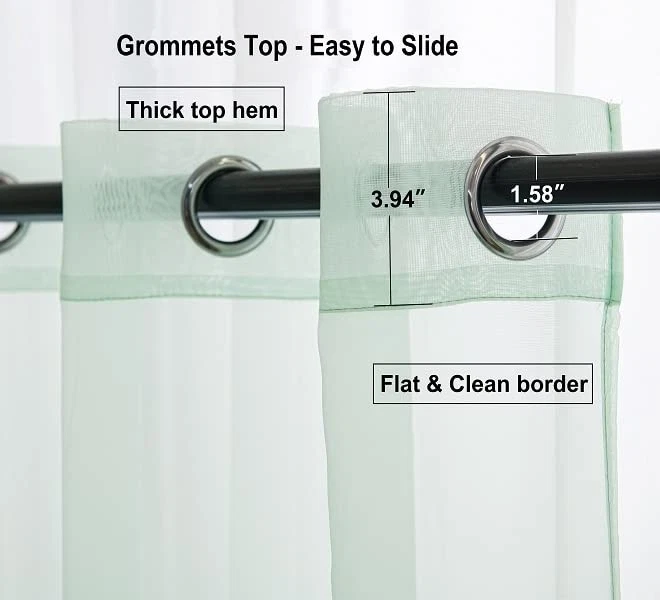 Return Policy Fast Delivery Trusted seller Green Sheer Curtain Short Panels,Eyelets Top Natural Voile Backdrop for Dining Room/Kitchen 2 Panels (W52 X L63, Mint Green) Product Description [High Quality Sheer Curtains] The sheer curtains are composed of 100% polyester voile fabric that gives it airy and wrinkle free properties along with sheerness that helps the curtain gather neatly and fall straight. [Versatile Drape Design] The curtains are designed with flat seam that falls perfectly and allows just the right amount of breeze and balance the light entering the room respecting your privacy as well. [Curtains with Excellent Structure for your Room] The curtain features 2 panels and is equipped with 8 matte silver grommets per panel with the inner diameter measuring 1.58-inches providing a good option for your living room. [Multi-Functional Curtains] The curtains provide a good decoration for indoors as it is suitable for different rooms of the house such as living room, dining room, bedroom, kids room and outdoors such as yard or patio providing light and breeze to come through elegantly for great ambiance [Easy Care] The sheer curtains require minimal care with cold machine wash, gentle cycle and tumble dry low. To extend its durability, do not bleach and light steam iron. Shipping Returns Payment Shipping Shipping is FREE to all addresses other than APO/PO boxes in the lower 48 states. All our stock ships from US-based warehouses. Shipped via USPS or UPS (depending on location and package weight) Unless stated otherwise, all orders will ship within 24-72 hours of your payment being processed. Check our feedback to see the great reviews of FAST shipping we offer. Returns Seller does not accept returns Payment We currently accept payment via eBay managed payments only. Once payment is cleared, we will dispatch your shipment within 1-3 business days. Please refer to the "Shipping" tab for more information regarding shipping speed to your destination.