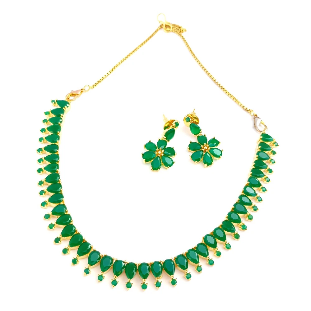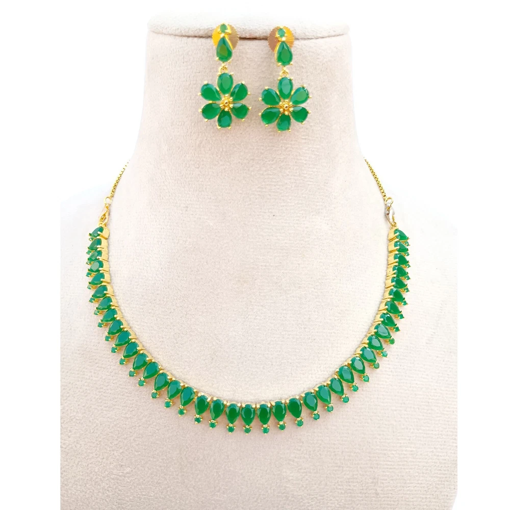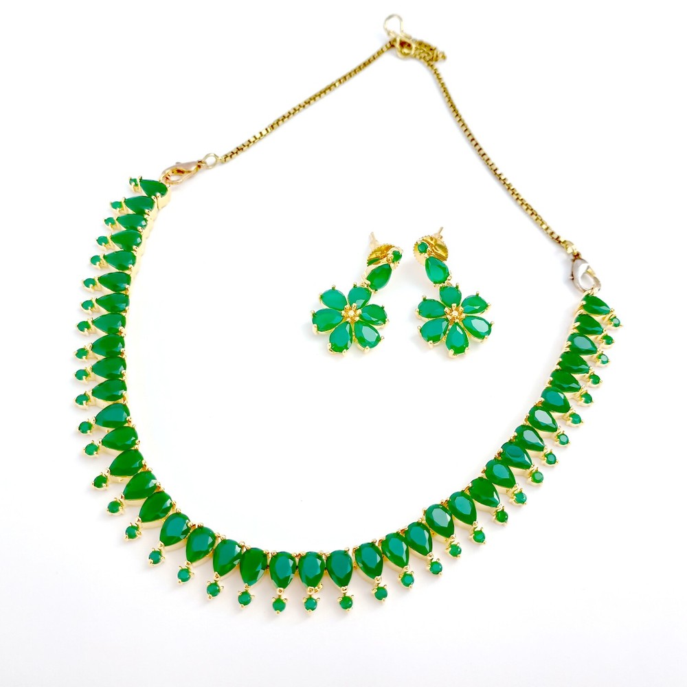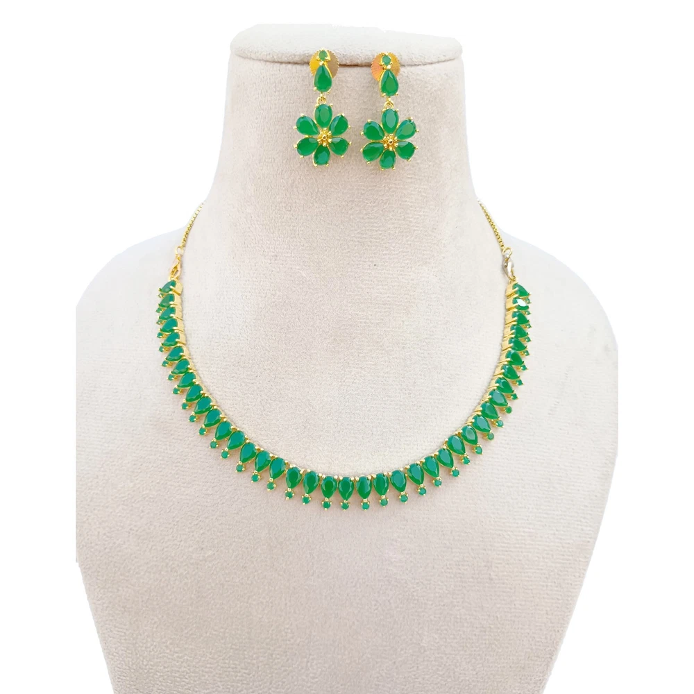 $ 17.75Gold Plated Emerald Green Kundan Polki and Crystals Necklace with Earrings
