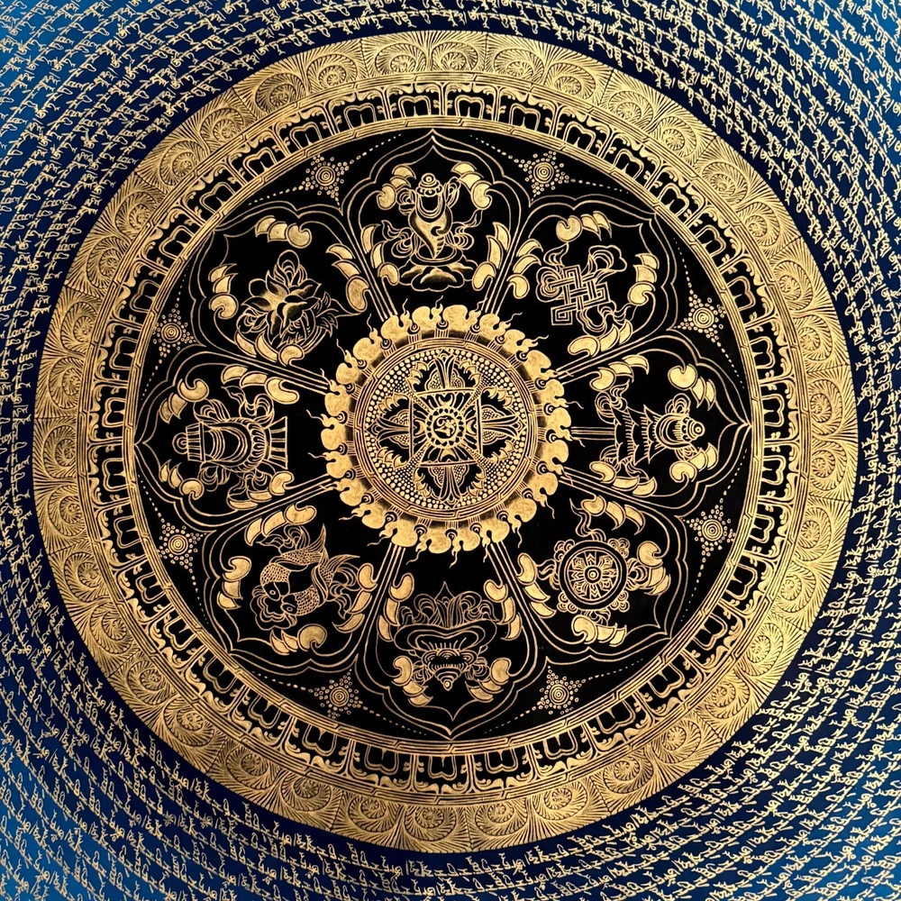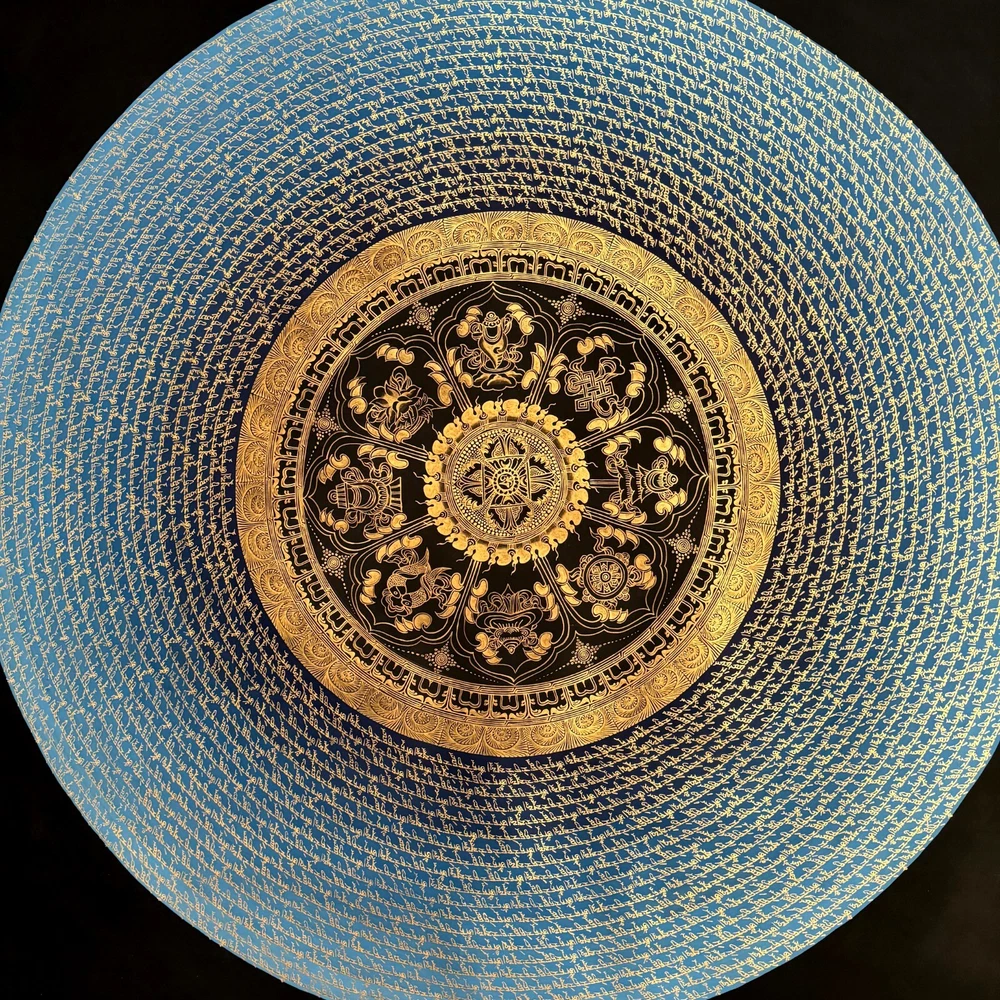 Namaste and Welcome to my Gallery!!! All of the paintings and arts in my gallery are originally handmade and hand-painted by my family members and other local artists who have been practicing their craft for over two decades. My father is Master Artists Nepal with an experience of more than four decades; you can see some of his work in this Gallery. Also you can see some of the beautiful and soulful artwork of talented local artists from Himalayas. ~~Green Tara Mandala Thangka Art~~ The Green Tara Mantra is: Om Tare Tuttare Ture Svaha Meaning: 1. Om: Represents the body, speech, and mind of all Buddhas and Bodhisattvas, and invokes their blessings. 2. Tare: Refers to Green Tara, the embodiment of compassion and swift action. Tara liberates beings from physical, emotional, and spiritual suffering. 3. Tuttare: Protects from the eight great fears, which are both external dangers (like fire, water, thieves, etc.) and internal fears (such as pride, ignorance, attachment, and anger). 4. Ture: Removes hindrances and obstacles, bringing peace and enlightenment. 5. Svaha: A concluding sound that signifies offering or surrender, often interpreted as a way to solidify the mantra's blessings. Significance: - Green Tara is regarded as the "Mother of Liberation" and symbolizes active compassion. - She is swift in responding to the prayers of those in need, embodying the energy of rapid enlightenment. - Chanting her mantra is believed to: - Remove obstacles and fears. - Heal emotional wounds. - Attract blessings of prosperity, peace, and happiness. - Help practitioners develop wisdom, compassion, and courage. Regular recitation of the mantra with devotion fosters a connection with Green Tara’s energy, cultivating a sense of inner peace and empowerment. [Size = 110cm x 110cm] Material Used: • Cotton Canvas • Natural Pigments and colors • Gold leaf ~Excellent for meditation or home/office decor, ~Tibetan Yoga Wall Art ~Genuine 100% hand-painted from Himalayas Please feel free to contact me if you have any question regarding the painting.
