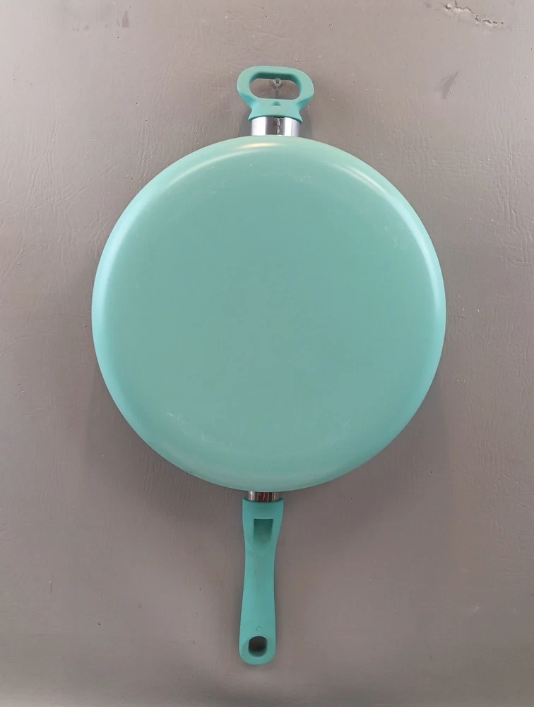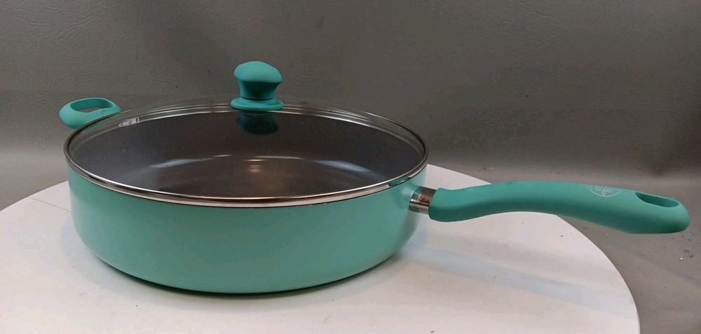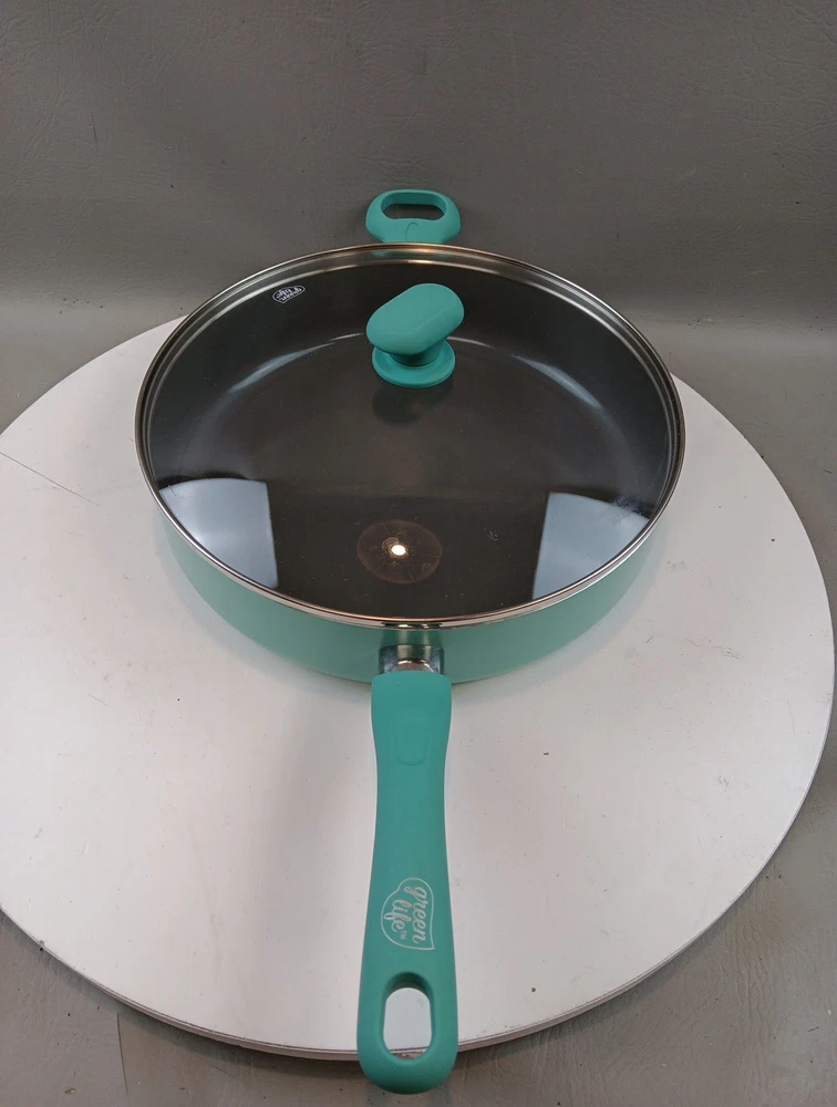 The GreenLife Skillet Fry Pan is a two-piece set that includes a 12" skillet with a soft grip handle and lid. Made with ceramic, PFAS-free nonstick material, and bakelite handles, this frying pan is designed for healthy cooking. Its flattened-cylindrical shape and turquoise color add a stylish touch to any kitchen. With a weight of 5.15 pounds, this GreenLife skillet is durable and perfect for everyday use.
