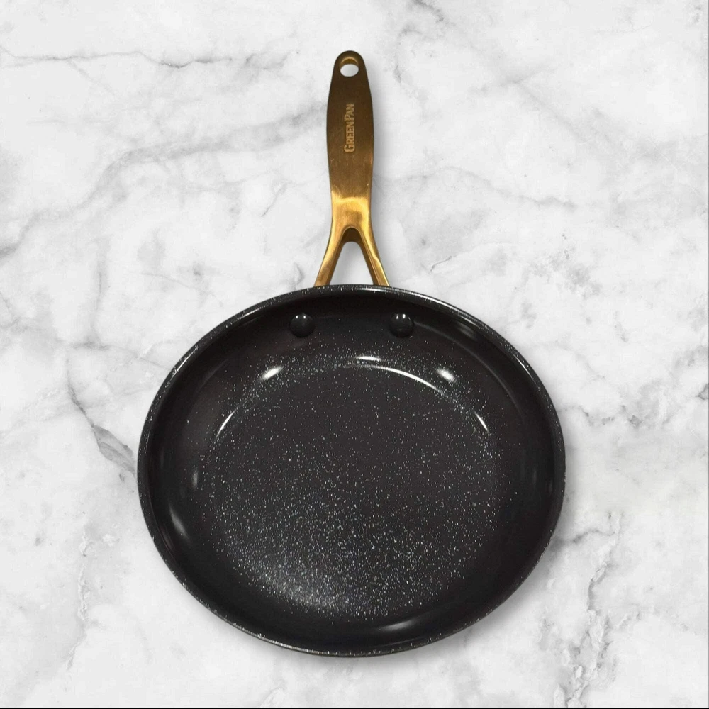 GreenPan Jewel 3-Piece Fry Pan Set Nonstick Gold Handle Excellent Surface This GreenPan Jewel 3-piece fry pan set (8.15”, 10.5”, 12.09”) features the Thermolon Infinite8 ceramic nonstick coating—diamond-reinforced for durability and toxin-free. The gold-tone handles add luxury flair, while the hard-anodized bodies offer scratch resistance and even heat. Cookware surfaces are excellent; bottoms show light wear. Oven-safe to 600°F and dishwasher-safe, this set is perfect for daily use or as a stylish kitchen upgrade.Details:•Material: Hard-anodized aluminum, ceramic nonstick, stainless steel handles•Size: 8.15”, 10.5”, 12.09”•Collection: GreenPan Jewel•What’s Included: Set of 3 fry pans•Country of Origin: Made in China•Condition: Excellent interiors, some cosmetic wear on bottoms GreenPan Jewel 3-Piece Fry Pan Set Nonstick Gold Handle Excellent Surface This GreenPan Jewel 3-piece fry pan set (8.15”, 10.5”, 12.09”) features the Thermolon Infinite8 ceramic nonstick coating—diamond-reinforced for durability and toxin-free. The gold-tone handles add luxury flair, while the hard-anodized bodies offer scratch resistance and even heat. Cookware surfaces are excellent; bottoms show light wear. Oven-safe to 600°F and dishwasher-safe, this set is perfect for daily use or as a stylish kitchen upgrade. Details: •Material: Hard-anodized aluminum, ceramic nonstick, stainless steel handles •Size: 8.15”, 10.5”, 12.09” •Collection: GreenPan Jewel •What’s Included: Set of 3 fry pans •Country of Origin: Made in China •Condition: Excellent interiors, some cosmetic wear on bottoms × × × × × × × × × Buy now and save! Shipping info Click the Shipping & Payments tab above the listing description for more info Click the Shipping & Payments tab above the listing description for more info! Additional delivery notes PICK UP OPTION Sorry, our items are NOT available for pick-up. PAYMENT Immediate payment is required upon selecting "Buy It Now" or upon checking out through the cart. We accept payment via U.S. PayPal accounts and all Major Credit Cards, Debit Cards & Google Pay. We are legally required to collect sales tax in those states and localities where we maintain a physical presence (nexus). The applicable amount of sales tax charged to an order will be calculated based on the shipment destination's state and local sales tax laws. Thank you for shopping with us on eBay! Additional Information No additional information at this time Ask seller a question You might also like Egg Wooden Serving Board - Threshold Flex Strainer Sink Strainer & Stopper 2-N-1 Fits Most 3.5” Drains & Disposals, C POURO Twist & Pour Resealable Bottle Pouring Spouts for Kitchen and Bar Pampered Chef Stoneware | Baking Bowl Contact To contact our Customer Service Team, simply click the button here and our Customer Service team will be happy to assist. Ask seller a question © Kitchen Switchen Shipping & Payments Click the Shipping & Payments tab above the listing description for more info Payment Accepted Payment Methods Immediate payment is required upon selecting "Buy It Now" or upon checking out through the cart. We accept payment via U.S. PayPal accounts and all Major Credit Cards, Debit Cards & Google Pay. We are legally required to collect sales tax in those states and localities where we maintain a physical presence (nexus). The applicable amount of sales tax charged to an order will be calculated based on the shipment destination's state and local sales tax laws. Thank you for shopping with us on eBay! Returns Returns are accepted Items must be returned within 30 days of the auction ending Buyer will pay for return shipping. eBay integration by