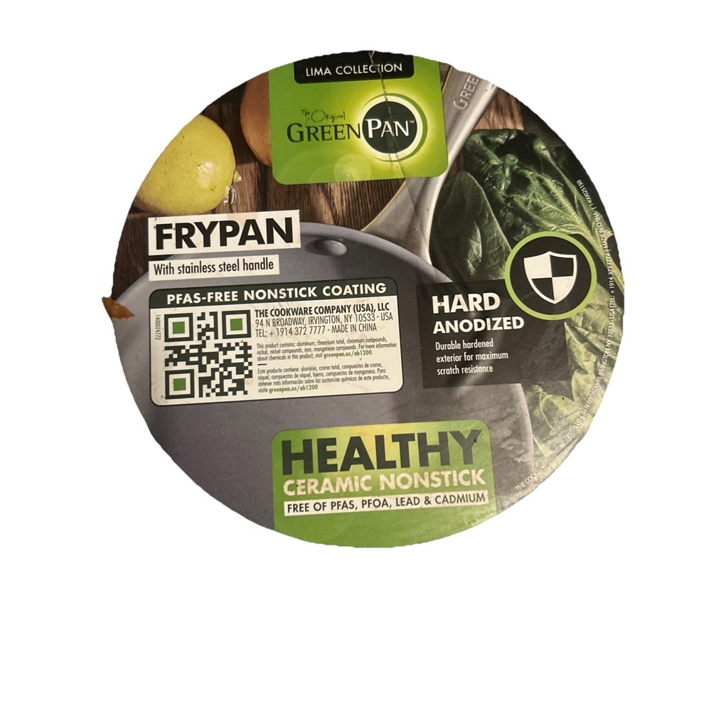 Due to variations from Picture to in-person our product's colors may vary slightly when seen in person. GreenPan Lima Collection Hard Anodized 12 Inches Ceramic Frying Pan Cookware Oven Safe New Hard Anodized aluminum ensures superior heat conduction Ceramic nonstick coating PFAS, PFOA, lead & cadmium-free Allows for high-heat cooking up to 600°F degrees Stainless steel handle Dishwasher safe Note: Brand New. Original Box Not Included. There may be some superficial scratches/marring from handling on our store shelf. Shipping Due to variations from Picture to in-person our product's colors may vary slightly when seen in person. GreenPan Lima Collection Hard Anodized 12 Inches Ceramic Frying Pan Cookware Oven Safe New Hard Anodized aluminum ensures superior heat conduction Ceramic nonstick coating PFAS, PFOA, lead & cadmium-free Allows for high-heat cooking up to 600°F degrees Stainless steel handle Dishwasher safe Note: Brand New. Original Box Not Included. There may be some superficial scratches from handling on the store shelf.