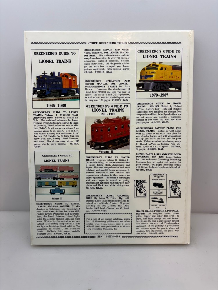 Up for sale one Used Greenberg's Guide to Lionel Trains 1901-1942 Volume I. Free Shipping!