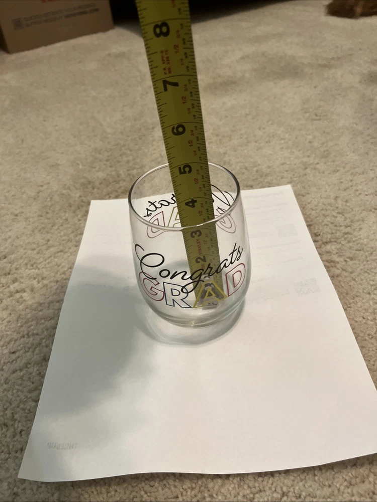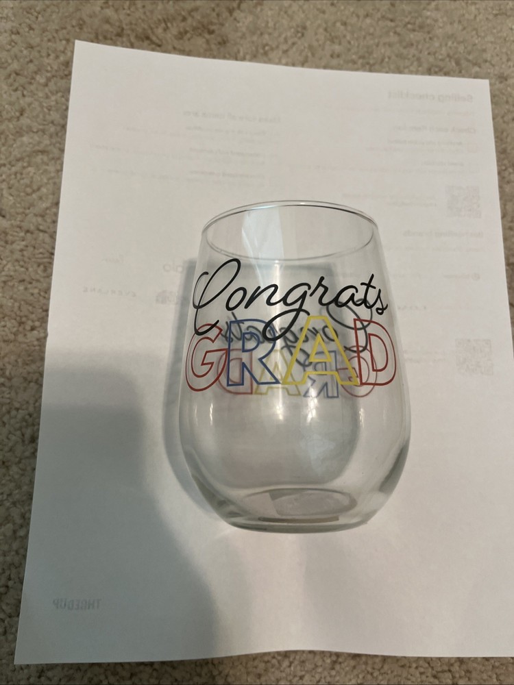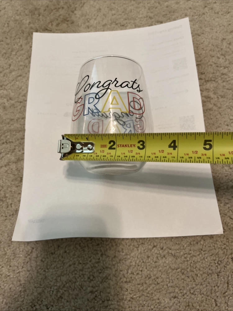 Celebrate special occasions with this beautiful Greenbrier "Congrats GRAD" stemless wine glass. The glass is made of high-quality clear glass material and features a geometric shape with an inspirational and happy design. The glass is decorated with a bear and the words "Congrats GRAD" making it an excellent choice for all occasions. This 17oz wine glass is perfect for adults and is a great addition to any kitchen, dining, or bar collection. The glass is 5 inches tall and features a round design with a capacity of 17oz. The glass is from the Cristar brand and is an excellent choice for those who want to celebrate their graduation or any other special occasion.
