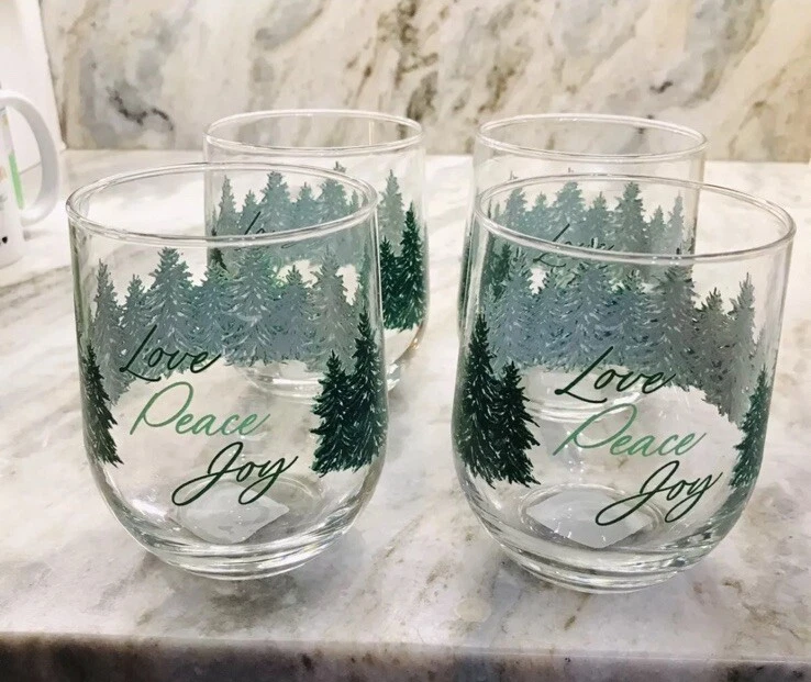 The Greenbrier Holiday Winter Pine Trees Old-Fashioned Set Of 4 Glasses features an abstract Christmas design with a green color scheme, perfect for the winter season. Made of glass with a capacity of 16.8 oz, these round glasses are 4 inches in height and are decorated with an Art Deco style. The set includes four glasses, each showcasing a festive holiday theme of pine trees, making them a charming addition to your glassware collection for holiday gatherings.
