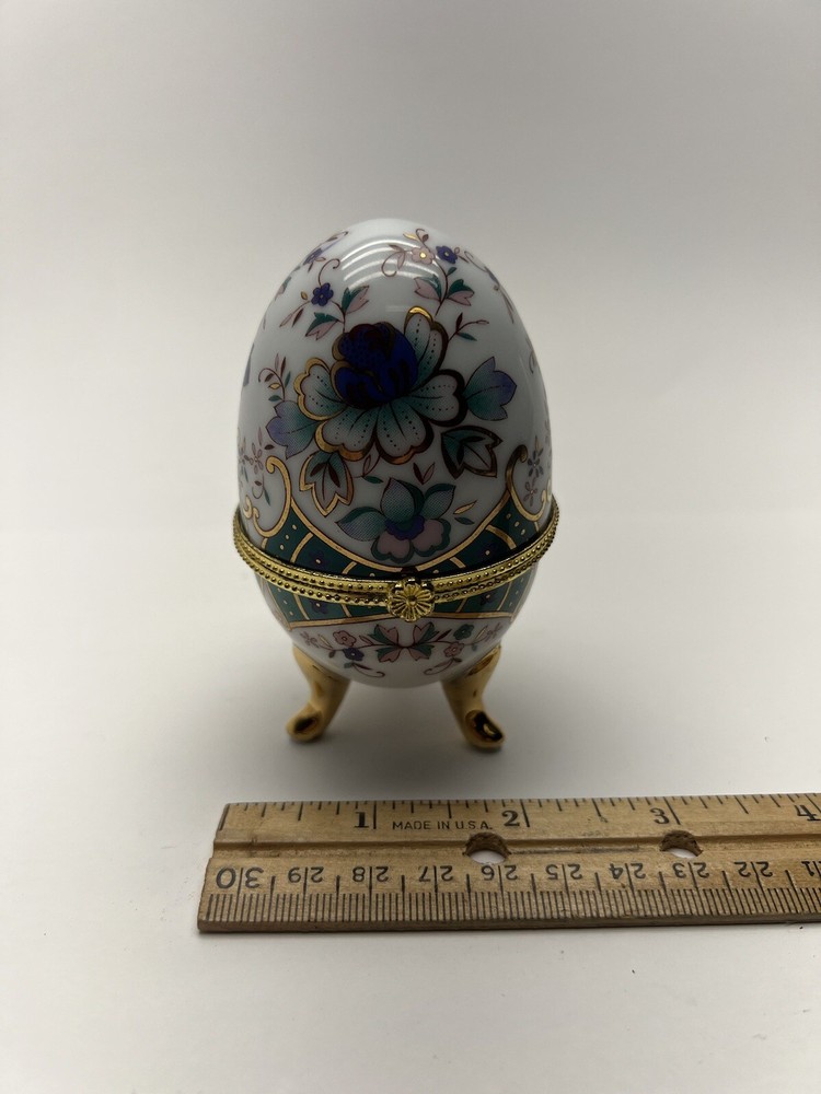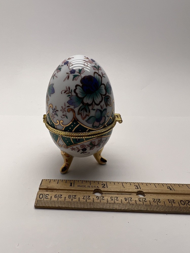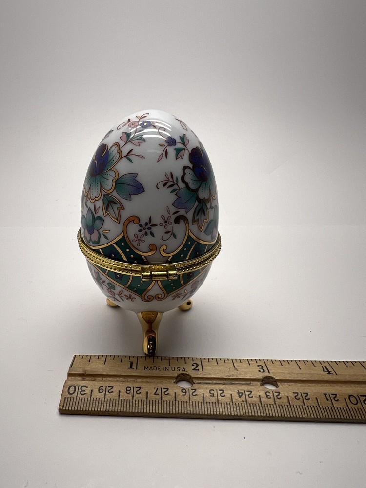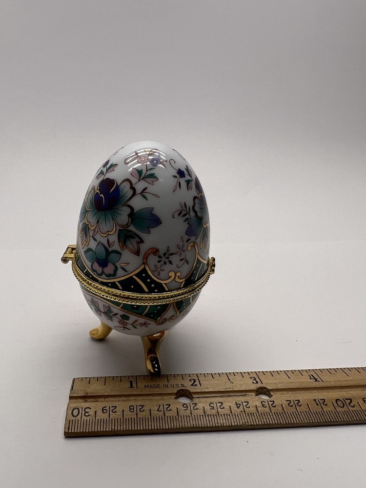 HomeGreenbrier International 4" Porcelain Egg Trinket Box Chesapeake VA Souvenir