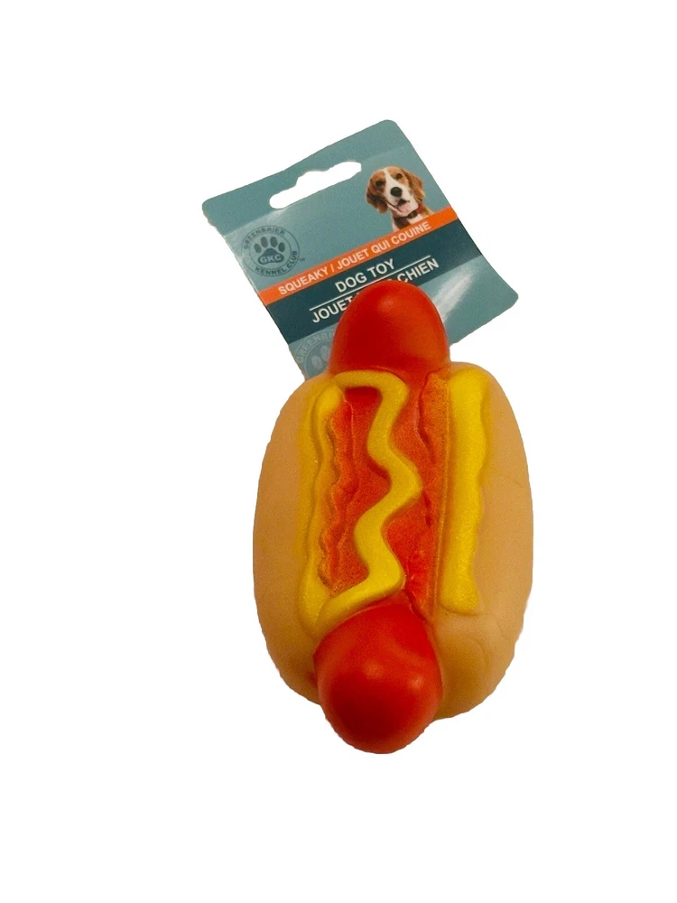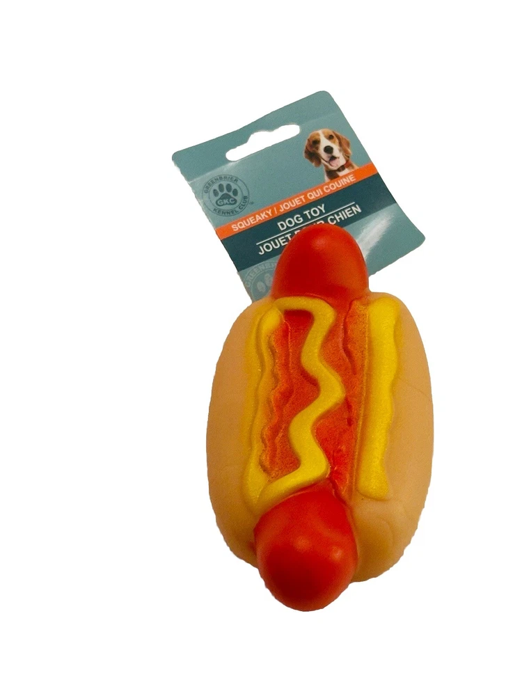 Greenbrier Kennel Club (GKC) Hot Dog Shaped Squeaky Dog Toy -
