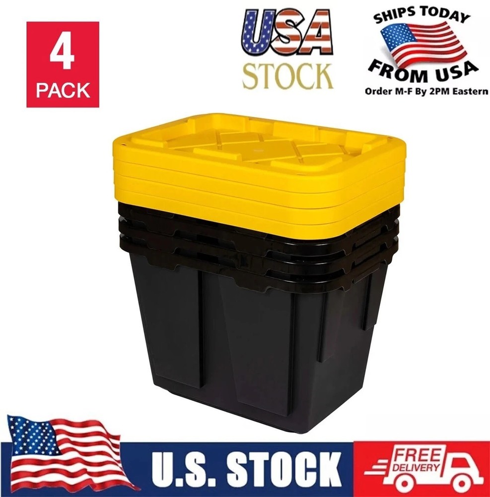 ** US STOCK - FAST & FREE SHIPPING ** 🚚 🚚❗️ Shipped from our warehouse in UNITED STATES ❗️❗️🚚🚚 Greenmade® Professional Storage Totes 12-Gallon, Black/Yellow New Sealed Box! - Pack Of 4 Totes SHIPPING AND HANDLING IS FREE - NO TARIFF HANDLING TIME IS ONE DAY. IF YOU HAVE ANY QUESTIONS PLEASE CONTACT ME UNDER THE CONTACT SELLER. Shipping This item is IN STOCK from warehouse in USA and ready to ship within 24 hours. We strive to make the shipping process as easy as possible. Most of our items ship out within 24-48 hours and take 3-8 days for delivery. If you have any questions about our shipping policy or delivery times please don't hesitate to contact us. We DO NOT ship to the following: PO BOX & APO/FPO Addresses Hawaii, Alaska, Puerto Rico, & Virgin Islands. We ship to the continental 48 US States Only.