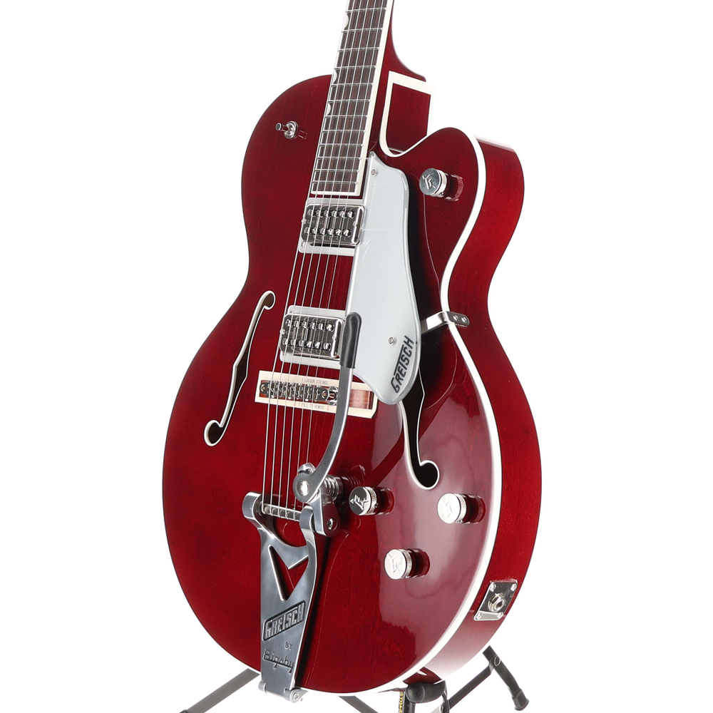 Weight 7lbs 5oz Up for sale is a Gretsch Tennessean Hollow Body with String-Thru Bigsby. This one came to us in great shape! The electronics have been play tested and working as they should. There may be some very light surface scratching but is in overall excellent condition. This one comes with a case Our Professional Collection combines classic Gretsch sound with modern performance features that deliver an enhanced playing experience. Featuring flagship pickups and electronics, these guitars are designed for powerful sound, total versatility, and exceptional control. The Gretsch Tennessean is a historic model made famous by some of the world's most revered artists. With its understated elegance and player-centric features, the Professional Tennessean delivers classic Gretsch sound in a reliable, no-nonsense package. FEATURES: 16"-wide, 2.5"-deep maple body with Arc-Tone bracing Standard "U"-shaped maple neck with 24.6" scale length 12"-radius rosewood fingerboard with rolled edges, 22 medium jumbo frets, pearloid Neo-Classic thumbnail inlays and Luminlay side dots PRO-FT Filter'Tron humbucking pickups Three-position pickup toggle switch, individual volume controls for neck and bridge pickups, master volume control with treble bleed circuit and master no-load tone control with "Squeezebox" capacitor String-thru Bigsby B6CP vibrato tailpiece Adjusto-Matic bridge with pinned rosewood base Graph Tech TUSQ XL nut Gotoh locking tuners Grover strap locks G6241 Gretsch 16" deluxe hollow body hardshell case included SKU:2401419859 Specifications: Body Finish : Gloss Body Material : Laminated Maple Body Shape : Tennessean® Bridge Mounting : Pinned Bridge Pickup : PRO-FT™ Filter'Tron™ Bridge : Adjusto-Matic™ Color : Deep Cherry Stain Configuration : Filter'Tron™ / Filter'Tron™ Control Knobs : G-Arrow Controls : Volume 1. (Neck Pickup), Volume 2. (Middle Pickup), Master Volume, Master Tone Hardware Finish : Nickel Pickguard : Silver Plexi with Black Gretsch® Logo Switching : 3-Position Toggle: Position 1. Bridge Pickup, Position 2. Bridge and Neck Pickups, Position 3. Neck Pickup Fingerboard Material : Rosewood Fingerboard Radius : 12" (305 mm) Fret Size : Medium Jumbo Neck Finish : Gloss Neck Material : Maple Neck Shape : Standard "U" Neck Pickup : PRO-FT™ Filter'Tron™ Number Of Frets : 22 Nut Material : Graph Tech TUSQ XL Nut Width : 1.6875" (42.86 mm) Orientation : Right-Hand Position Inlays : Pearloid Neo-Classic™ Thumbnail Tuning Machines : Gotoh® Locking Franklin Guitar Works - Who We Are FGW is a division of MIRC, LLC (Musical Instrument Reclamation Corporation), located in Franklin TN. MIRC is the world's largest refurbisher of stringed instruments. We partner with the leading manufacturers in the industry, helping them recondition their distressed instruments. All of our instruments have been inspected, set up, and refurbished by our certified technicians to ensure you are receiving a quality instrument. Hours of Operation Our online Business hours are Monday - Friday 7:30 am to 4:00 pm CST. Closed on weekends and holidays. Shipping Policy Free ground shipping within the continental USA. Items under $20 will have a $9.95 shipping charge. We do not offer international shipping. We cannot ship to a PO Box. Orders require a physical mailing address to be processed. All orders over $500 will be shipped with a direct Signature Requirement to ensure it is received. If the signature requirement is refused, the customer will assume responsibility for the package once it reaches the delivery address. Orders are processed Monday through Friday, 7:30am - 4:00pm CST. Shipments are prepared in the order that they are received. We make every effort to expedite orders as quickly as possible, but we cannot guarantee ship dates. Please allow up to 3 business days for tracking information. Thank you for your business!
