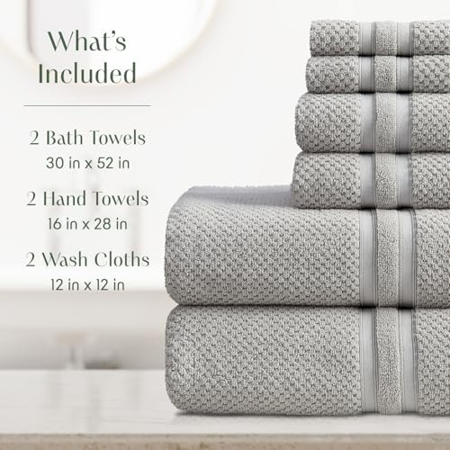 Return Policy Fast Delivery Trusted seller Grey Bath Towels Set of 6 | Popcorn Textured | 100% Combed Cotton | Absorbent Quick-Dry Gray Towels for Bathroom | Oeko-TEX Standard 100 Cotton | Poli Collection - High Rise Grey Product Description SET INCLUDES : 2 Bath Towels 30" x 52", 2 Hand Towels 16" x 28", 2 Wash Cloths 12" x 12" POPCORN TEXTURED: Featuring a unique, raised popcorn weave, these towels offer a plush yet lightweight feel with excellent absorbency and quick drying properties. The textured design enhances softness and provides a gentle massage-like effect on the skin. Made from materials like cotton or bamboo blends, they add a stylish and cozy touch to any bathroom while maintaining durability for everyday use. MADE IN GREEN : OEKO-TEX Standard 100 certified no harmful chemicals. Feel good about using our towels, they are safe on your skin and good for the environment! EASY CARE : For best care to keep your towels soft, fresh, and Absorbent. Machine wash cold with like colors and tumble try on low heat or hang to air dry. Avoid Dryer Sheets for maximum absorbency! SATISFACTION GUARANTEED : We love our towels and we want you to love them too, In fact we love them so much that we use them ourselves! If you are however unsatisfied, contact us and we will make it right. Shipping Returns Payment Shipping Shipping is FREE to all addresses other than APO/PO boxes in the lower 48 states. All our stock ships from US-based warehouses. Shipped via USPS or UPS (depending on location and package weight) Unless stated otherwise, all orders will ship within 24-72 hours of your payment being processed. Check our feedback to see the great reviews of FAST shipping we offer. Returns Seller does not accept returns Payment We currently accept payment via eBay managed payments only. Once payment is cleared, we will dispatch your shipment within 1-3 business days. Please refer to the "Shipping" tab for more information regarding shipping speed to your destination.