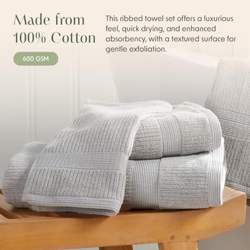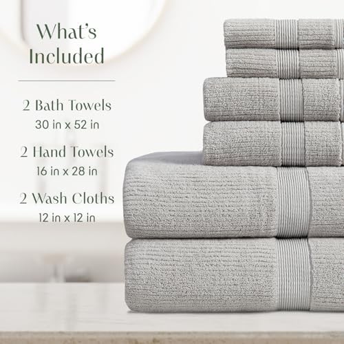 Return Policy Fast Delivery Trusted seller Grey Bath Towels Set of 6 | Ribbed Textured | 100% Combed Cotton | Absorbent Quick-Dry Gray Towels for Bathroom | Oeko-TEX Standard 100 Cotton | Mauro Collection - High Rise Grey Product Description SET INCLUDES : 2 Bath Towels 30" x 52", 2 Hand Towels 16" x 28", 2 Wash Cloths 12" x 12" RIBBED TEXTURED: : Designed with a stylish ribbed texture, these towels offer enhanced absorbency, quick drying, and a luxurious feel. The textured surface provides a gentle exfoliating effect, making them both practical and spa-like. Available in various colors and materials, such as cotton or bamboo blends, they add a modern touch to any bathroom décor. MADE IN GREEN : OEKO-TEX Standard 100 certified no harmful chemicals. Feel good about using our towels, they are safe on your skin and good for the environment! EASY CARE : For best care to keep your towels soft, fresh, and Absorbent. Machine wash cold with like colors and tumble try on low heat or hang to air dry. Avoid Dryer Sheets for maximum absorbency! SATISFACTION GUARANTEED : We love our towels and we want you to love them too, In fact we love them so much that we use them ourselves! If you are however unsatisfied, contact us and we will make it right. Shipping Returns Payment Shipping Shipping is FREE to all addresses other than APO/PO boxes in the lower 48 states. All our stock ships from US-based warehouses. Shipped via USPS or UPS (depending on location and package weight) Unless stated otherwise, all orders will ship within 24-72 hours of your payment being processed. Check our feedback to see the great reviews of FAST shipping we offer. Returns Seller does not accept returns Payment We currently accept payment via eBay managed payments only. Once payment is cleared, we will dispatch your shipment within 1-3 business days. Please refer to the "Shipping" tab for more information regarding shipping speed to your destination.