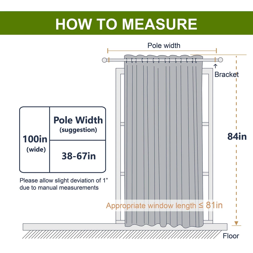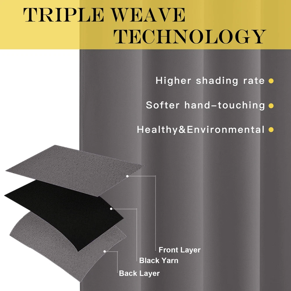 AMAZING FABRIC: The blackout curtain's fabric is super soft and heavy innovative triple-weave polyester fabric. Same material back as of front makes it appear more elegant. The 14 sliver grommets top (inner diameter is 1.6-inch) adds a modern touch and easy hanging. MULTIPLE FUNCTIONAL: These extra wide curtains are wide enough to covering sliding door perfectly. Besides, the curtain panel helps your patio door to block out most of light and UV ray, high performance on thermal insulated, noise reducing and privacy protecting. ENERGY SMART: Triple weave blackout fabric balances room temperature by insulating against summer heat and winter chill, reducing air conditioning costs. Protect your furniture, floors and artwork from the ravages of the sun, the Patio Door Drapes will pay for themselves off over time. WISE COMPATIBLE: Thread trimmed and wrinkle free, all sets for you to put them up right away. Suitable perfectly for: sliding door, patio door and any large window. These wide curtains can be hung separately, or combine with sheer curtains. EASY CARE: Good quality finishing will withstand years of use. Machine washable and Wash the water temperature below 86F. Mild detergent no bleaching. Low temperature ironing. Don’t use sharp things scratching curtains.