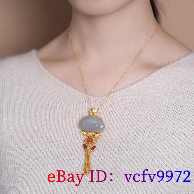 Grey Jade Lotus Pendant Natural Jewelry 925 Silver Amulet Necklace Amulets