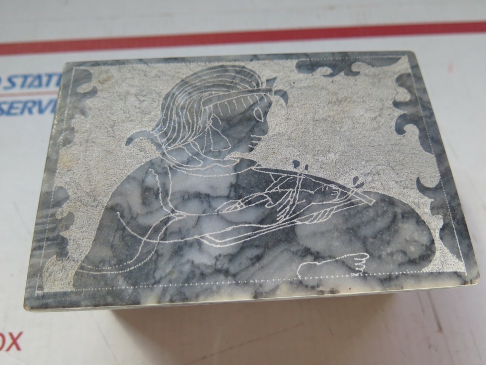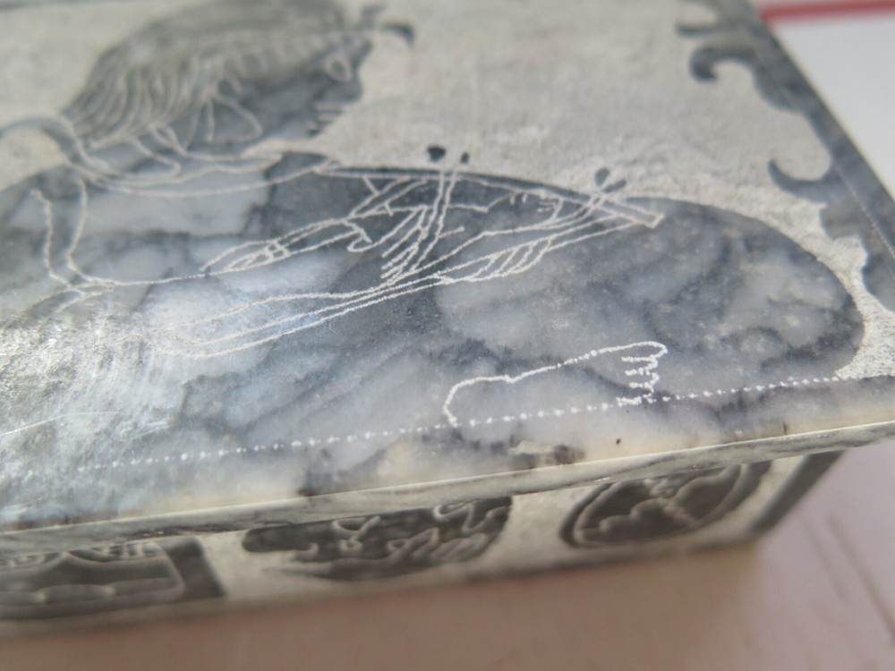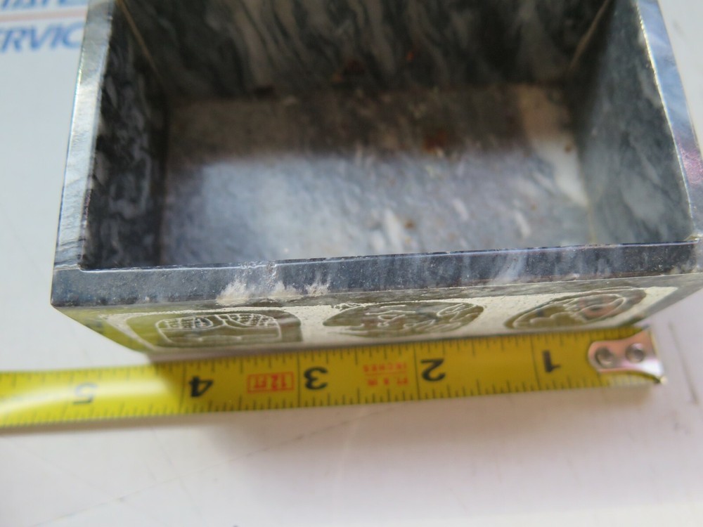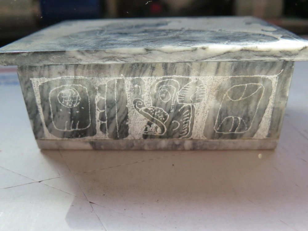 Pattern: Marbled Shape: Rectangle Brand: Unbranded Type: Jewelry Box Color: Gray/ Blue/ Brown Material: Glass Features: Boxed Item Length: 8 in Subject: Boxing