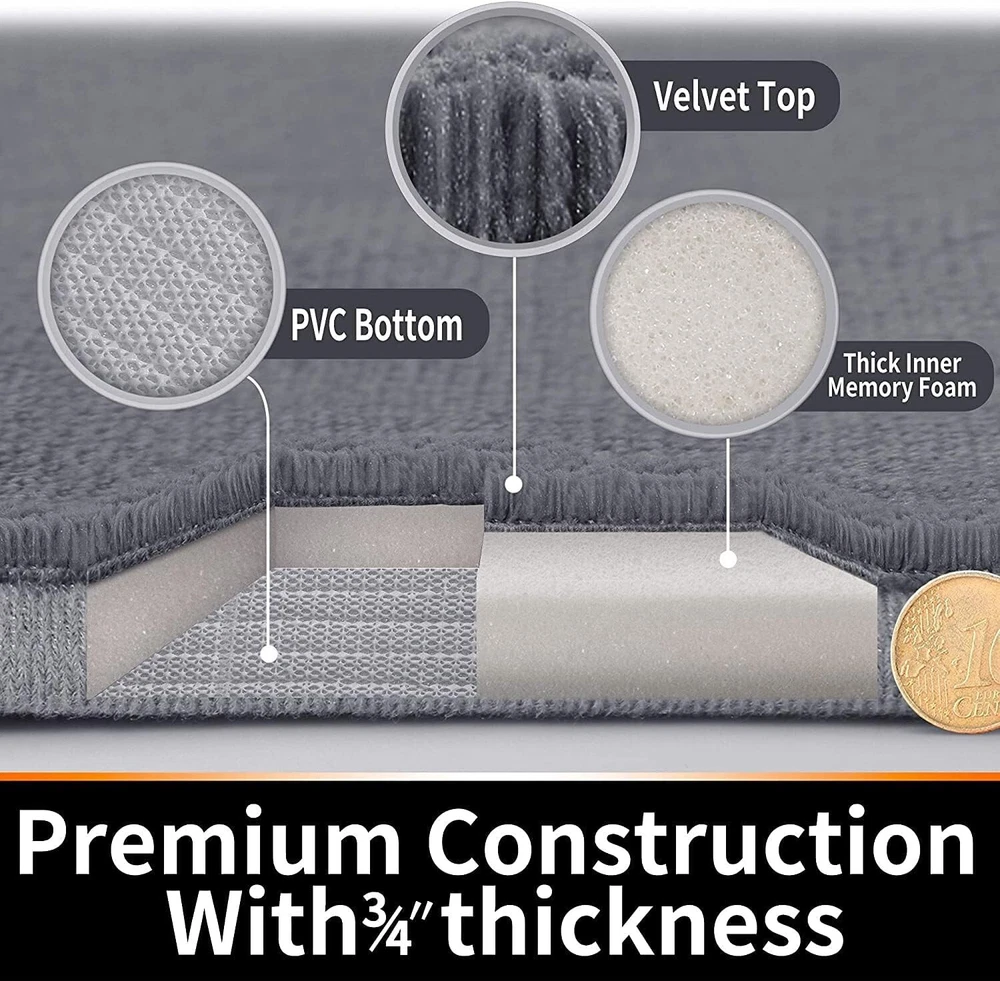 Ultra-Soft Quick-Dry Bath Rug 24x16 with Non-Slip Backing in Grey
