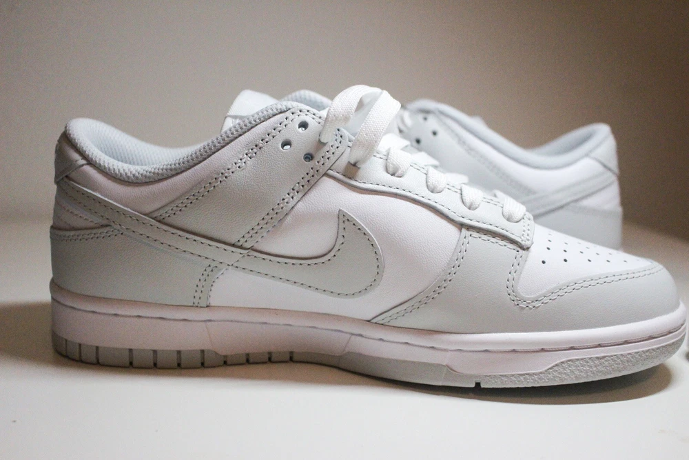 These Nike Dunk sneakers are in a stylish grey Photon Dust colorway and are designed specifically for women in size 7.5. They are part of the Nike Dunk product line, known for its iconic athletic silhouette. With a sleek sneaker style, these shoes are perfect for both athletic activities and casual everyday wear. Made by the trusted brand Nike, these sneakers offer both comfort and style for women looking for a versatile and trendy footwear option.