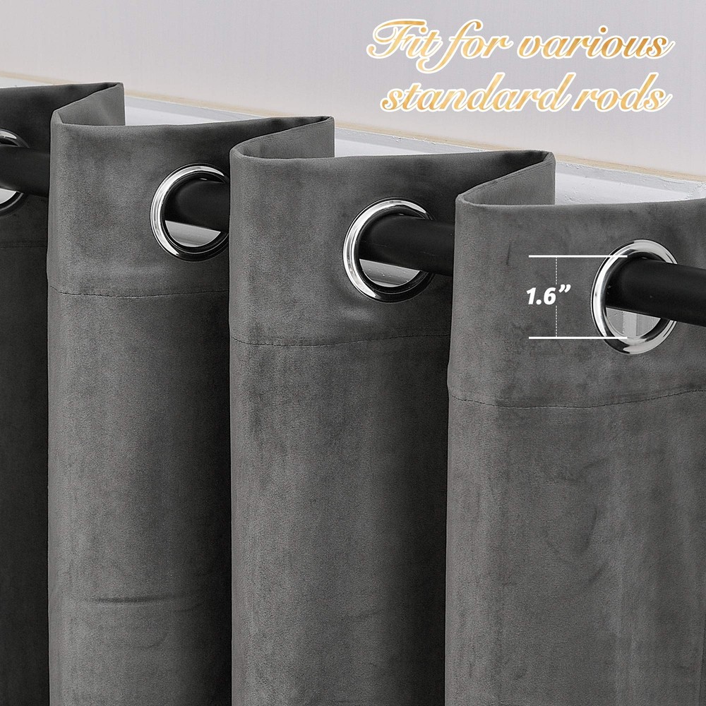 Ready Made: Package includes a pair of panels of W52"x L84"(132cm x 213cm) each | W104"x L84"(264cm x 213cm) in total. The design of silver grommet (1.6 inch inner diameter) creates casual elegance for your house, which makes the curtains easy to install and slide. Velvet Fabric: Smooth, soft, and drapey velvet curtains offer a delightful tactile experience. The texture of the fabric lending the curtains a beautiful light-catching quality, which creates a cozy and luxurious ambiance in any room, elevating its overall aesthetic. Light Dimming: The curtains with dense fabric are capable of blocking 65% to 90% of natural light, effectively shielding the room from harmful UV rays. The darker color has better blackout effect. For 100% blackout shading, add the curtain liners(: B01KX17LVRC). More Advantages: Velvet curtains offer noise reduction, thermal insulated, and privacy protection. The dense fabric help to reduce external noise and regulate indoor temperature, creating a peaceful and cosy environment. They provide maximum privacy, protecting your personal space. Easy Care: Good quality finishing will withstand years of use. Machine washable and Wash the water temperature below 103℉. Mild detergent no bleaching. Quick ironing when needed. Please be free to us if you have any question with our products.