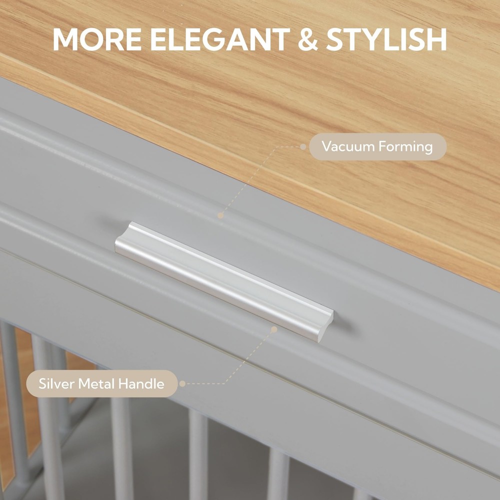 Dog Crate Furniture with Tray Features Wooden Tabletop Equipped W Sliding Doors