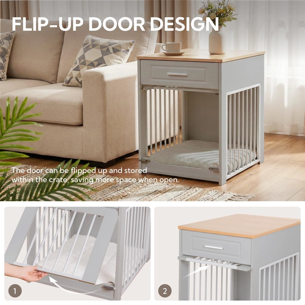 Grey Wooden Dog Crate Furniture Side Table Indoor Kennel Lockable Door Drawer đăStylish Multi-Functional Furniture ăMore than just a crate, this is a versatile home accent. With its elegant design, it effortlessly doubles as a chic side table or a practical bedside cabinet, providing a dedicated space for your pet while seamlessly blending into your home decor. âăSpace-Saving Flip-Up DoorăThe innovative flip-up door tucks neatly away inside the crate with a simple upward push. This clever design saves significant space and allows for effortless cleaning and hassle-free access to your furry friend. đăSpacious Tabletop & Storage DrawerăBoasts a generous tabletop for your lamp, photo frames, or decor. The integrated drawer is ideal for organising all your pet's essentialsâfrom treats and toys to grooming suppliesâkeeping them neatly out of sight but always within reach. đ¶ăComfortable Den for DogsăExpertly crafted to be a safe and comfortable retreat for smaller breeds. The tubular door frame and three-sided ventilation ensure excellent airflow and a clear view, so your dog feels secure and you can easily keep an eye on them. đ©ăRobust & Secure ConstructionăEngineered for durability with robust 10mm metal tubes and strengthened wood panels. The added security of two reliable safety latches ensures it stays securely closed, giving you complete peace of mind for years to come. Tired of bulky, unsightly crates cluttering your home? Meet the modern pet owner's solution: a dog crate so stylish, it blends seamlessly into your living space. Designed with both aesthetics and functionality in mind, this piece doubles as elegant furniture while providing a secure, comfortable sanctuary for your small dog or puppy. Crafted from premium, solid materials, its robust construction ensures long-lasting durability for daily use. The ingenious flip-up door offers effortless accessâsimply lift to open and lower to secure, making it incredibly convenient for you while feeling safe and cozy for your furry friend. A standout feature is the built-in storage drawer at the base. Perfect for tucking away leashes, toys, treats, and grooming supplies, it keeps all your pet essentials organized and within reach, yet completely out of sight. More than just a crate, itâs a versatile pet habitat that combines a secure resting area with smart storage. Give your pet the comfort they deserve and your home the polished look you desire. A perfect harmony of form and function. I offer FREE postage on all UK orders! I post within 2 business days of payment, usually sooner. I use a selection of shipping services such as Royal Mail, Yodel, Evri, UPS etc. Local collection is not provided. Please visit my eBay store to check out other items for sale!