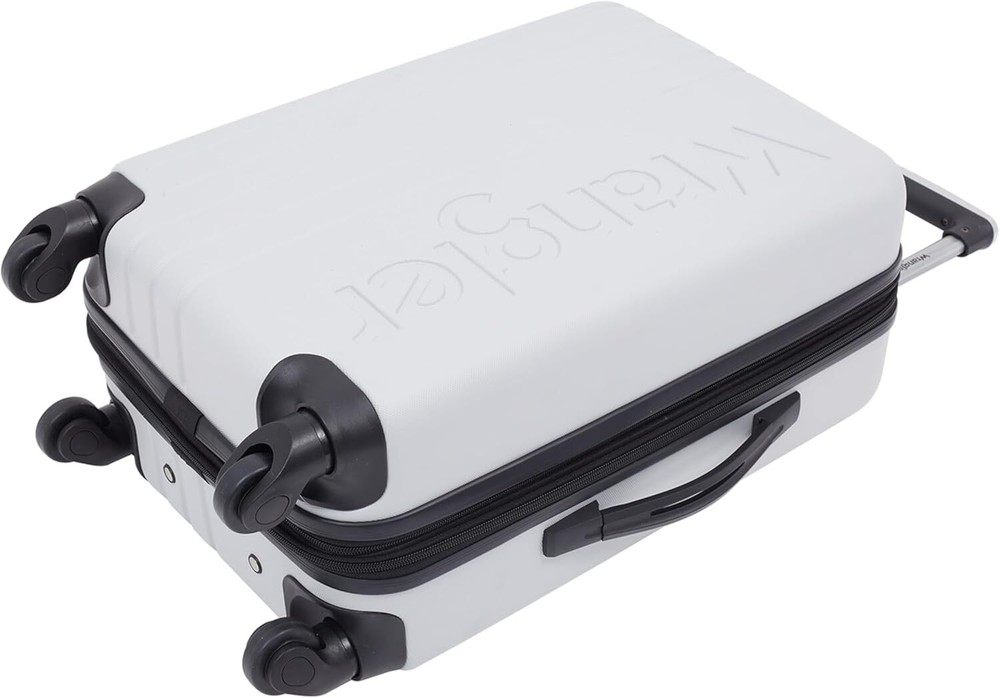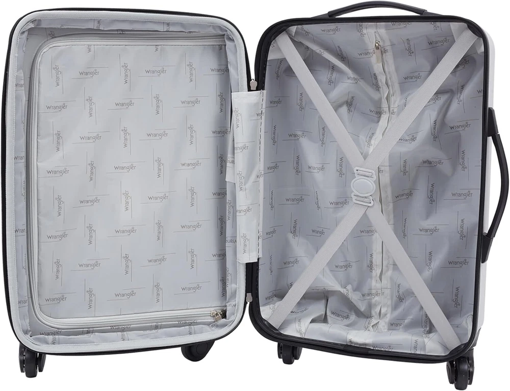 3 piece set includes: 20" Carry on luggage and 2 additional packing cubes Expands for extra packing capacity Luggage has 4 spinner wheels for improved and smooth mobility that's easy on the wrist when traveling Luggage material: ABS hard-shell that's light yet durable