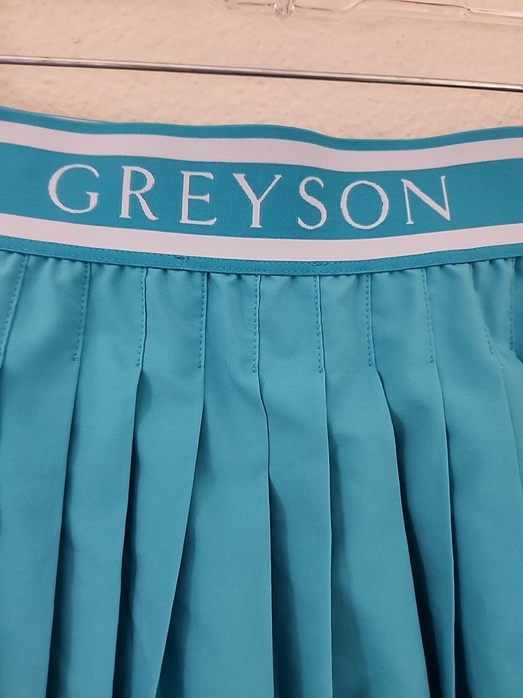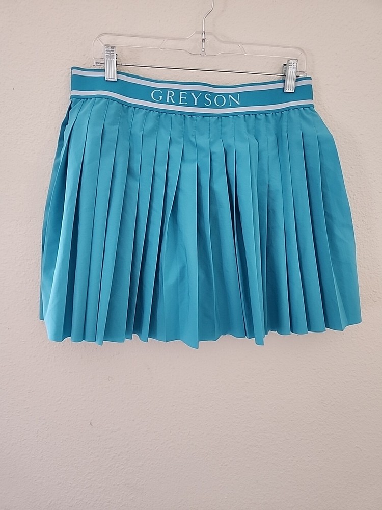 Features: Elastic Waist Closure: Pull On Pattern: Solid Rise: Mid Accents: Pleated, Logo Size Type: Regular Occasion: Casual Season: Fall, Spring, Summer Material: Polyester Handmade: No Style: Skort MPN: Does Not Apply Skirt Length: Short Type: Skort Inseam: Not Available Vintage: No Size: XL Color: Blue Theme: Sports, Beach Department: Women Brand: Greyson Personalize: No
