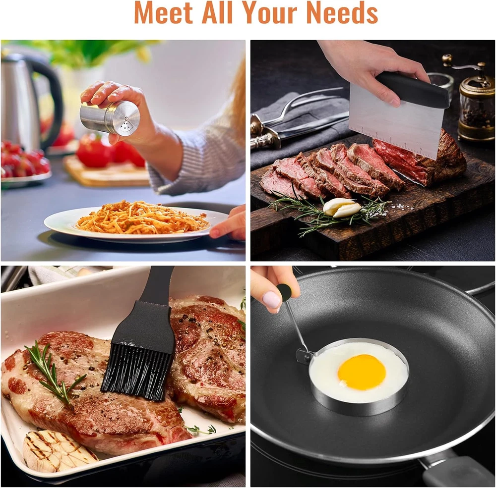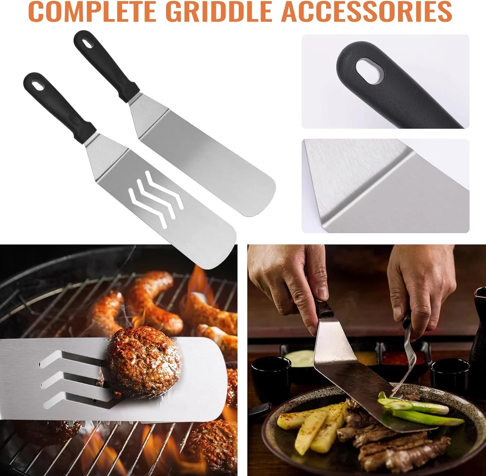 Store New Arrivals Add to Favorite View Feedback Contact Griddle Accessories, 16Pcs, Griddle Spatula Set for Blackstone and Camp Chef Stainless Steel BBQ Accessories with Spatula, Scraper, Bottle, Tongs, Egg Ring Description Item dimensions L x W x H 1 x 1 x 1 inches Number of Pieces 16 Item Dimensions 1 x 1 x 1 inches Material Stainless Steel Material Type Stainless Steel Handle Material Metal,Silicone,Stainless,Stainless Steel,Steel Is the item dishwasher safe? No Included Components Spatula Professional Grade Stainless Steel: Our griddle accessories are crafted from 304 food-grade stainless steel, providing exceptional hardness and durability while ensuring safe and healthy food preparation. With the ability to easily handle foods such as hamburgers, patties, and steaks, our sturdy and thick stainless steel design is built to withstand long-term use, making it a nice barbecue accessory. Long-Lasting Quality: Our grill accessories are surface-treated with anti-rust technology to minimize the possibility of rusting. After use, simply allow them to air dry and store them in the included bag, reducing the need for additional maintenance steps like applying slushing oil to the metal surface. This makes our tools both convenient and long-lasting. Note: To avoid damaging the protective layer, do not use a sharp cleaner to scrub the surface of the tool. Complete Grill Set: You'll receive a full 16-piece grill tools kit, which includes 1 large spatula, 1 small spatula, 1 small slotted spatula, 1 hamburger spatula, 1 silicone brush, 1 grill locking tong, 1 chopper, 1 scraper, 1 Cleaning Brush, 2 sauce dispensers, 2 spice shaker, 2 egg molds, and 1 carry bag. Our BBQ set is the most comprehensive on the market, capable of meeting all your needs. Heat-Resistant Handle: Our handles are designed to be long enough, fitting adult male hands comfortably. Constructed from ABS heat-resistant, they effectively block the transfer of heat. This means that even when the griddle is working at high temperatures, your hands will remain cool and protected. It's also perfect for those who want to help with cooking. The Perfect Gift: Our barbecue tools are suitable for yard, outdoor, and camping barbecues, making them an excellent gift choice for Father's Day, Thanksgiving, and Christmas. This versatile set of tools is an indispensable aid for foodies looking to explore their culinary journey. Product Description Whonline is committed to establishing a brand of gardening tools that meet the various needs of customers. Our efficient tools will help you take care of your cute greenery more easily, and at the same time let you embrace the fun of gardening. Although our scale is small at present, we will continue to develop convenient and practical high-quality products that satisfy you and facilitate your green and healthy life. Complete Grill Set: 1 large spatula, 1 small spatula, 1 small slotted spatula, 1 hamburger spatula, 1 silicone brush, 1 grill locking tong, 1 chopper, 1 scraper, 1 Cleaning Brush, 2 sauce dispensers, 2 spice shaker, 2 egg molds, and 1 carry bag. All these will help you become a professional chef for teppanyaki in camping. Food Grade Stainless Steel Food grade stainless steel is not only sturdy and thick, but also healthier and safer. High-quality stainless steel will greatly increase the life of these tools. Hanging Holes Design The sturdy ABS plastic handles are designed with hanging holes, simply hang them on the grill hooks or kitchen hooks so that these tools could be organized and stored easily. Easy to Clean Our 16pcs griddle accessories set includes a scraper and a cleaning brush to help you complete the cleaning work effectively without harming your griddle. ABOUT US We offer the best prices around on high quality products. Our E-store includes media such as books, movies, music and games while offering electronics, toys, sporting apparel, clothing, tools, general home, garden items and more. SHIPPING We are always working hard to ensure your package arrives as soon as possible. Please understand that some factors like weather, high postal traffic, and the performance of shipping companies are outside of our control. We offer free shipping to the lower 48 states and ship within 2 business days of payment, usually sooner. We do not accept P.O. Boxes. Please provide a physical address. For shipping outside of the continental USA, we only use eBay's Global Shipping Program.The item is shipped to KY and then sent to the rest of the world. International customers are responsible for all duties and taxes. Continue to check out in order to calculate costs for shipping the item to your country. Messages regarding eBay's Global Shipping Program MUST be directed at eBay EXCLUSIVELY. RETURNS We offer a 30-Day Return Policy on items which you are not completely satisfied with. You have the option for a full-refund or an exchange of the item. No returns are available on items shipped outside of the USA. PAYMENT We accept PayPal. CONTACT US This page content is yet to come Please ad us to your favorite seller and visit again later Thank You CUSTOMER SATISFACTION We try our very best to make sure every customer is completely satisfied. If there's a problem, message us! We're happy to help. WE ACCEPT Copyright © 2021 AutoDS. | All Rights Reserved