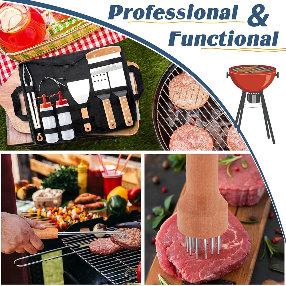 Griddle Accessories Kit BBQ Flattop Grill Tools Set for Outdoor Camping Cooking 【VALUE GRIDDLE SET】 Package Included: 2 x Melting Dome ( 12”, 9” ), Long Griddle Spatula, Perforated Spatula, Multipurpose spatula, Burger Turner, Fish Turner, Griddle Spatula, Slant Edge Scraper, Bench Scraper, Narrow Turner, Cast Iron Griddle Press, Pigtail Food Flipper ( Right Handed ), Kitchen Tong, Grill Fork, Meat Tenderizer, 2 x Basting Brushes, 2 x Squeeze Bottles, 4 x Egg Rings, Storage Bag, Screwdriver 【PREMIUM & HEAVY DUTY】Our Grill Tools Set is made of high quality stainless steel, Which is food grade and heavy gauge, No worry any toxic materials into food, 1.5mm thick metal ensures holding heavy food without bending, Matte polished finish makes cleaning easily for less hassle, BUT NON-DISHWASHER SAFE, Smooth wooden handle without rough spots, Keep your hands safe during use, 3-rivet construction increase the strength, Will not easy to fall off, Sturdy enough for long lasting use 【NECESSARY GRILL SPATULAS】 With 9 versatile spatulas, You will become the grill master on every BBQ party, Thin beveled edge sliding great under the food, 45° angled structure ensure a comfortable grip and help to flip food easily, Slotted design allows grease to drain for healthy diet, Holes on the handle are big enough to hang, Multi-Purpose Spatula has a serrated edge for cutting meat and also works as a bottle opener, Griddle Scraper with clear scale for precise measuring while using 【MELTING DOME & GRILL PRESS】 2Pcs Melting Dome help to avoid smells to be mixed together and reduce splatter, Retaining food moisture well to keep food juicy, Large cover is easy to deal with multiple steaks or large amount of vegetables, Small Lid is ideal for grilling patties or keeping food warm, Cast Iron Burger Press helps to retain and distribute heat perfectly, Pressing out excess fat or liquid from meats, Grooves texture will leave attractive grill marks on food 【THE EXTRA GRILLS TOOLS】 The Meat Flipper can pick up the foods without twisting, Won’t leave marks on the meats, Meat tenderizer has ultra-sharp needles, Help you quickly pierce the meat, Marinating it with condiments to taste more delicious, Grill Tong is strong enough to grip a large chunk of meat, Sharp Grill fork can grab meat while slicing meat, With a practical Carrying Bag, Convenient to take it anywhere Product Description Joyfair Griddle Accessories Kit is made of heavy duty stainless steel, allows these griddle tools maintaining a long service life. Suitable for most food, spatulas for flipping meat, sausages, cutting dough, basting cover for melting cheese, steaming vegetable, etc. 1 Melting Domes 2 More Details 3 Multipurpose 4 Easy to Use 1 Griddle Press 2 Pigtail Food Flipper 3 Meat Tenderizer 4 More Useful Tools Design for Outdoor & Indoor Material Type Wooden Handles Material Wooden Handles Country of Origin China Is Dishwasher Safe No Item Weight 10.3 pounds Handle Material Wood Number of Pieces 26 Package Dimensions 17.2 x 12.76 x 4.72 inches Included Components function(f) {var _np=(window.P._namespace("DetailPageProductOverviewTemplatesJava"));if(_np.guardFatal){_np.guardFatal(f)(_np);}else{f(_np);}}(function(P) { P.when('A').execute(function(A){ A.on('a:truncate:po-attribute-truncate-3:updated', function(data) { var isTruncated = !data.truncateInstance.getIfTextFits(); var seeMoreElement = document.getElementById('po-attribute-see-more-id-3'); if(seeMoreElement) { seeMoreElement.style.display = isTruncated ? '' : 'none'; } }) }); })); 2 x Melting Dome, Long Griddle Spatula, Perforated Spatula, Multipurpose spatula, Burger Turner, Fish Turner, Griddle Spatula, Slant Edge Scraper, Bench Scraper, Narrow Turner, Cast Iron Griddle Press, Pigtail Food Flipper ( Right Handed ), Kitchen Tong, Grill Fork, Meat Tenderizer, 2 x Basting Brushes, 2 x Squeeze Bottles, 4 x Egg Rings, Storage Bag, Screwdriver See more Shipping Fast shipping is very important for us. Our expedited US shipping service is FREE. Your order will be shipped within 2 business days upon full payment received. Your order will be delivered within 2-3 business days after the handling time. Warranty & Returns 30-Day FREE Return Policy offered for unsatisfactory items. Options include: Refund or Exchange for another item. Contact us Customer satisfaction is our top priority. If you encounter any issues with our product, please don't hesitate to reach out to us. We are committed to ensuring your satisfaction and will go above and beyond to assist you. Your happiness is our goal! Thank you for shopping at our store.