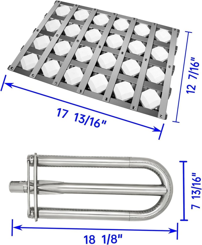 Grill Burners Grill Briquette Tray for Alfresco ALX2-30CD, ALX2-42C, ALX2-42RFG, ALX2-56, ALX2-56BFG, 18” BBQ Pipe Tubes Ceramic Briquettes Grill Replacement Parts Stainless Steel 【Dimensions】- 3 bbq grill briquette trays and 3 grill burners, Ceramic Briquettes plates: 17.8125 x 12.4375 inch, burners pipe tube: 18.125 x 7.8125 inch 【Fit】- Fit Alfresco ALX2-56, ALX2-56BFG, ALX2-56BFGC, ALX2-56BFGR, ALX2-56C, ALX2-56RFG, ALX2-56SZ, ALX2-56SZC, ALX2-56SZRFC; Fit Alfresco ALX2-30, ALX2-30C, ALX2-30CD, ALX2-30SZ, ALX2-30SZC, ALX2-30SZCD, ALX2-42, ALX2-42C, ALX2-42RFG, ALX2-42SZ, ALX2-42SZC, ALX2-42SZRFG 【Easy Install & Clean】- Simple Steps to install your grill. The surface of grill replacement parts are smooth and easy to care. 【Prolong Service life】- You don’t need to replace your grill repair kit for gas grill again and again. 【Professional Grill Parts】- Premium ceramic briquettes, strong oxidation resistance and corrosion resistance