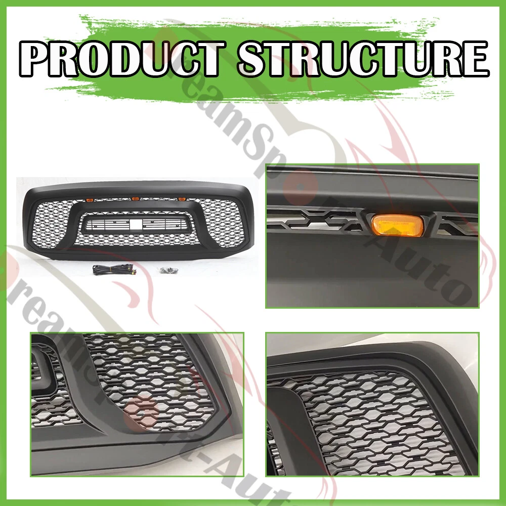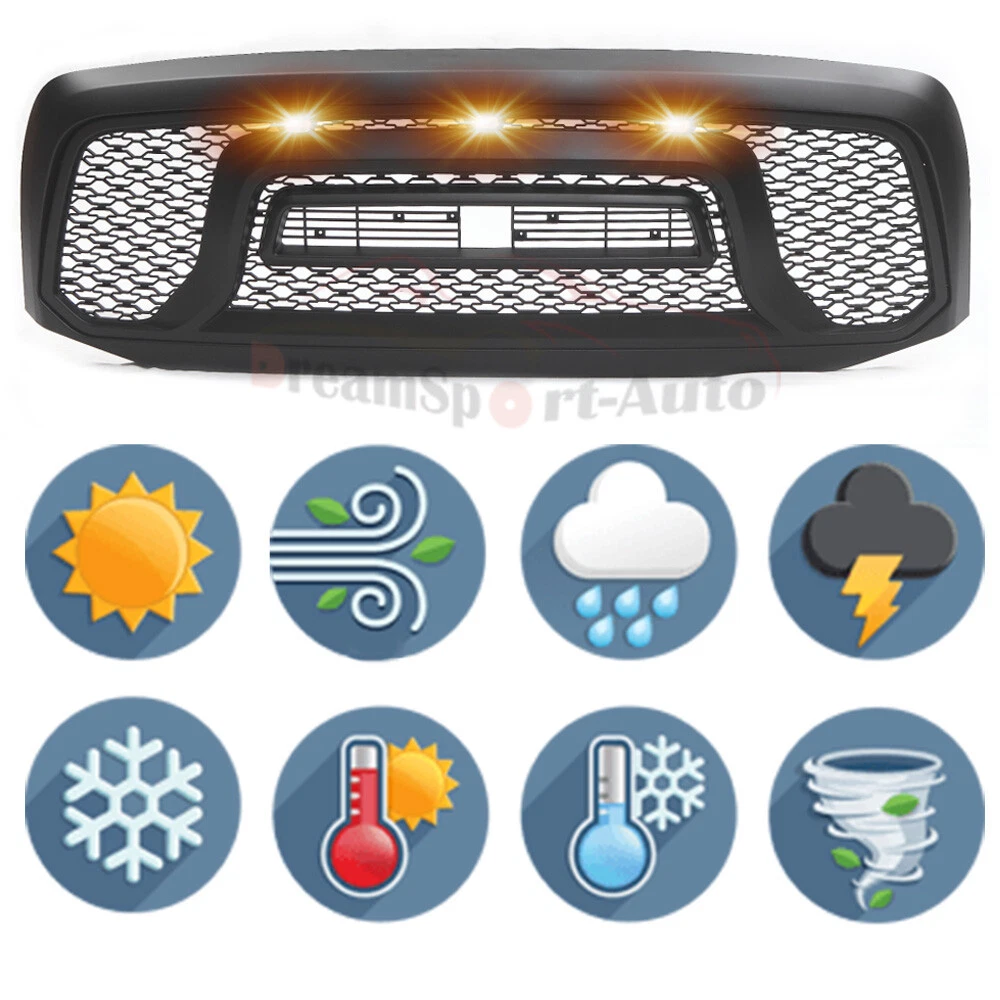 Product Description Grille Front Grill For Dodge Ram 1500 2006-2008 Mesh Upgrade W/Letter & LED FITMENT: For 2006-2008 Dodge RAM 1500 DESCRIPTION: 1,Front Grille is made from ABS with good performance, strong toughness, high rigidity, and superior corrosion proof. 2,The Matte Black finish makes your vehicle outstanding and distinct. Condition: 100% New In the Package Color: Matte Black Material: High Quality ABS Plastic PACKAGE INCLUDE: 1x Grille 3X Letters 3x Amber LED Lights 1x Wiring Harness FEATURES: 1,Premium ABS Material & LED Light The car front grille is made of superior ABS material with high strength and durability, wear-resistance and corrosion-resistance. 2,This Grille also includes 3 high mount amber LED lights, enhancing driving safety. 3,Improves Engine Cooling will prevent debris and or harmful things from damaging radiators while allowing air to pass by and keep the engine running cool. 4,Simple Installation Designed with high standard and precise size, it is a direct fit replacement for the old grille ( it may need modification of original grille brackets. Please get a professional to install it). Professional Installation is Highly Recommended Installation Instruction is NOT Included WE HIGHLY RECOMMEND PROFESSIONAL INSTALLATION!!! About Us Payment Shipping Return Policy About US *Have any questions,please send us a message and we will help you solve them. *Please do not open the return and dispute at will. Once it is opened, it will affect our view of the specific information of the order, which is inconvenient for us to solve the problem. * If you receive the goods and are satisfied , please give us a good comment, we will give you a good comment; *Do not feel free to give bad reviews, because bad reviews can not solve the problem, only contact us to let us know what problems you encounter, we can help you solve. Thank you. * We specialize in aftermarket performance parts and accessories. Our goal is to strive for the highest level of customer service to ensure the satisfaction of all our customers. * We work hard with our suppliers to find the best products, at the lowest prices from brands that you know and trust. * We have contracts in place with major shipping providers to help ship and deliver our products to the consumer fast and efficiently. Our average processing / handling time is less than 24 hours and about 95% of our shipments arrive earlier than the expected arrival dates. Based on eBay new policy,We accept payment by PayPal only. PayPal enables you to send payment quickly and securely online.We do not accept other payment methods. 1.Tracking number will be emailed to you once we have shipped your order.If there is any delay,it may be caused by bad weather or custom inspection.If you still can not receive the item within 7 Days,please contact us.You can track your parcel on the following website using your tracking number: 17track. (Copied to the browser to open) 2.We try our best to make you get desired products as soon as possible.In case you receive wrong products due to shipping error,please contact us for exchange or refund.If it is damaged,please refuse to acceot and contact us as soon as possible. 3.We are not responsible for wrong or undeliverable address.Please provide us your full address with Telephone number and make sure your shipping address is correct and deliverable.If you need to change your address,please change it in PayPal first before you pay. 30 Days Return & Exchange Policy: * We give you a 30 days money-back guarantee to return any items purchased, no questions asked, hassle-free. * You can return for refund or exchange same product or different product (difference of price will be charged) within 30 days after you receive the item. * Any returning or exchanging items must be in the original package and new condition. We reserve rights to refuse refit or damaged items (caused by buyer) for return and exchange. * No returns will be accepted if you contacted us after 30 days of receiving the item. * Return fee: Buyers are responsible to pay the return shipping fee. 15% restocking fee on total price will be charged and be deducted from the refund total. * Exchange fee: No restocking fee will be charged, however Buyers are responsible to pay the return shipping fee and exchange reshipping fee , depending on the weight of merchandise. * Email our Customer Service Department first before return the item back . Please specify your item number, your eBay ID, and the reason for the return. Click here to contact us directly. 60 Days Warranty Policy * Defective Return & Exchange : To help process this faster, please provide detailed description explaining the problem and attach photos of damaged products as well. If we authorize the return, you will be receiving an email with instructions on the return. Click here to contact us directly. * We give you a 60 days warranty to exchange any defective items. Within 3 days after you receive the item, Pre-paid return label or shipping fee will be provided if it is necessary. After 3 days, buyers are responsible to pay the return shipping fee to send item back to us. We will cover the replacement shipping fee. Defective products only can be exchanged for the exact same product within 60 days after the date of sale. No exchange will be accepted if you contacted us after 60 days of receiving the item. 1.Huge selections of car parts for you. Best quality with factory price. 2.Please contact us if you have any questions. About Us *Have any questions,please send us a message and we will help you solve them. *Please do not open the return and dispute at will. Once it is opened, it will affect our view of the specific information of the order, which is inconvenient for us to solve the problem. * If you receive the goods and are satisfied , please give us a good comment, we will give you a good comment; *Do not feel free to give bad reviews, because bad reviews can not solve the problem, only contact us to l