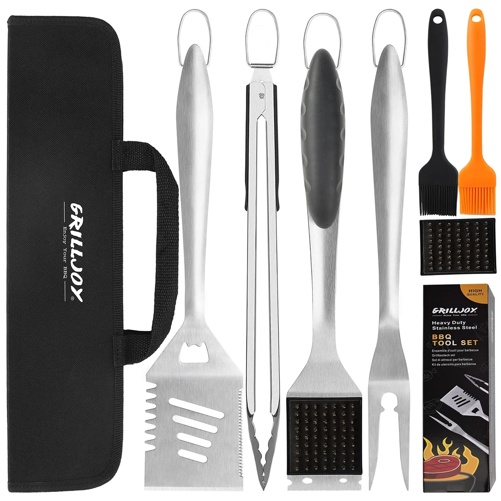 Grilljoy 8PCS Heavy Duty BBQ Grill Tools Set with Extra Thick Stainless Steel...