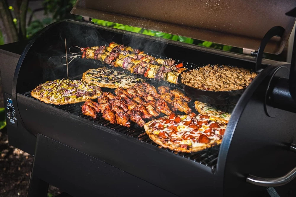 About this item Never use gas or charcoal again: cooking with wood just tastes better. Traeger created the original wood-pellet grill as the ultimate way to achieve wood-fired taste Versatile barbecue cooking: hot and fast, or low and slow, the Traeger Pro Series 34 pellet grill offers 6-in-1 versatility to grill, smoke, bake, roast, braise, and BBQ food to juicy perfection Precision temperature control: The Digital Pro Controller rocks Advanced Grilling Logic, which maintains a +/- 15 degree F temperature control to precision grilling. 450 °F Max Temp Sturdy and durable: powerful Steel construction and durable powder coat finish, Easy to clean porcelain grill grates and all-terrain wheels Large cooking capacity: 884 sq. In. Cooking capacity that can accommodate 8 chickens, 7 racks of ribs or 40 burgers Model Name Pro Series 34 (Bronze) Power Source Corded Electric Color Bronze Outer Material Alloy Steel Item Weight 152.1 Pounds Product Dimensions 27"D x 53"W x 49"H Inner Material Steel Fuel Type Wood Pellet