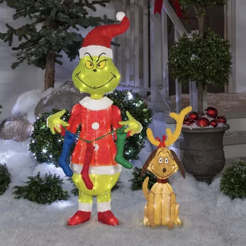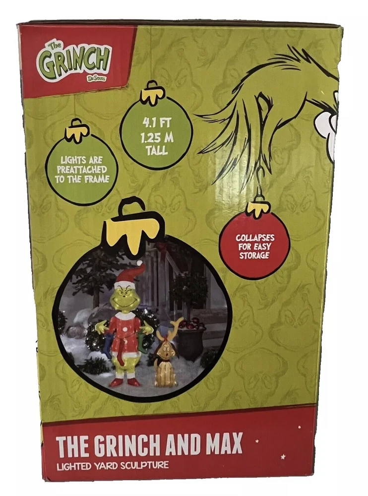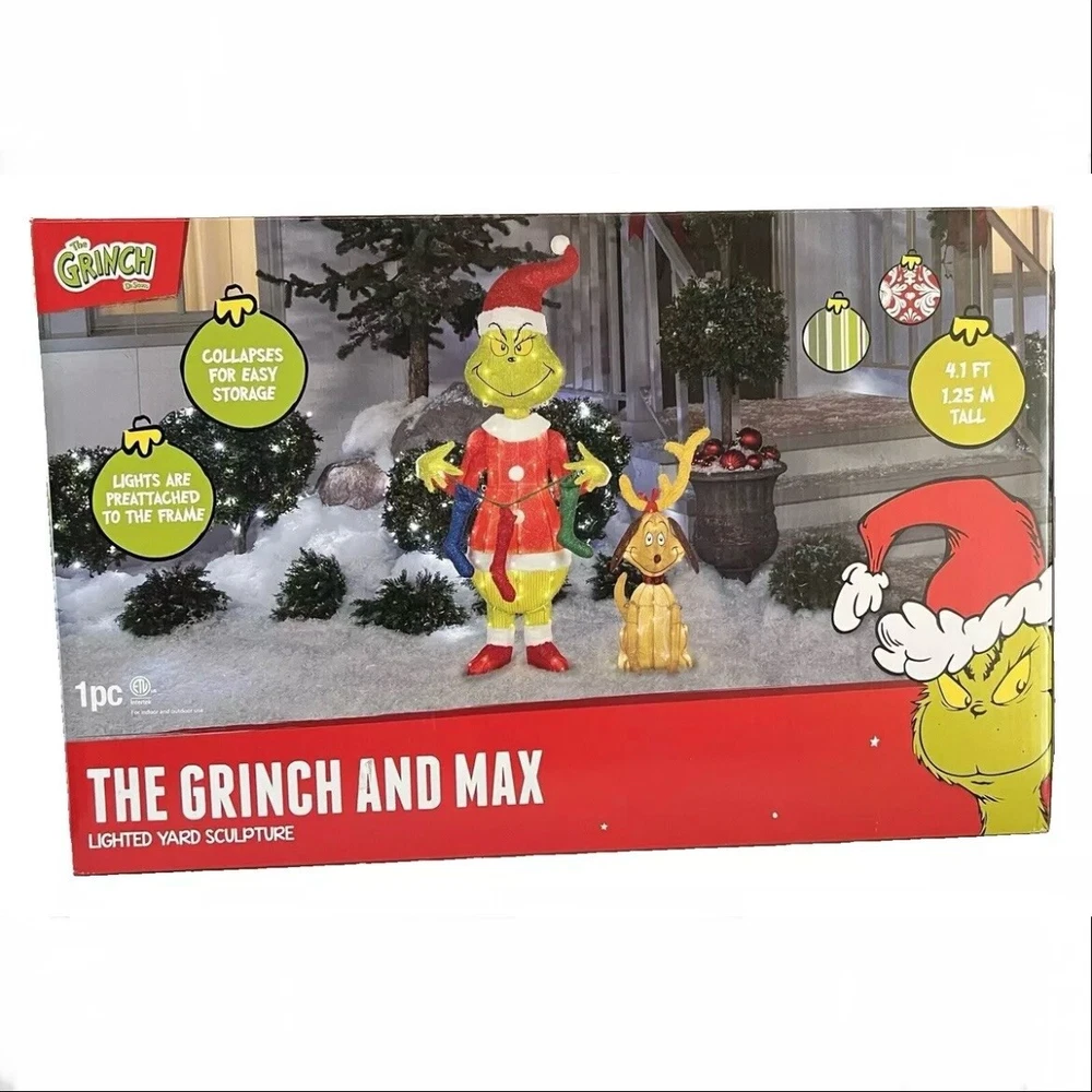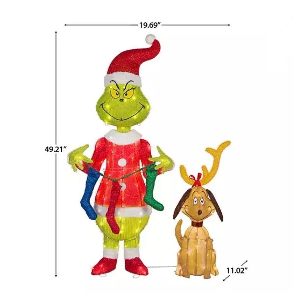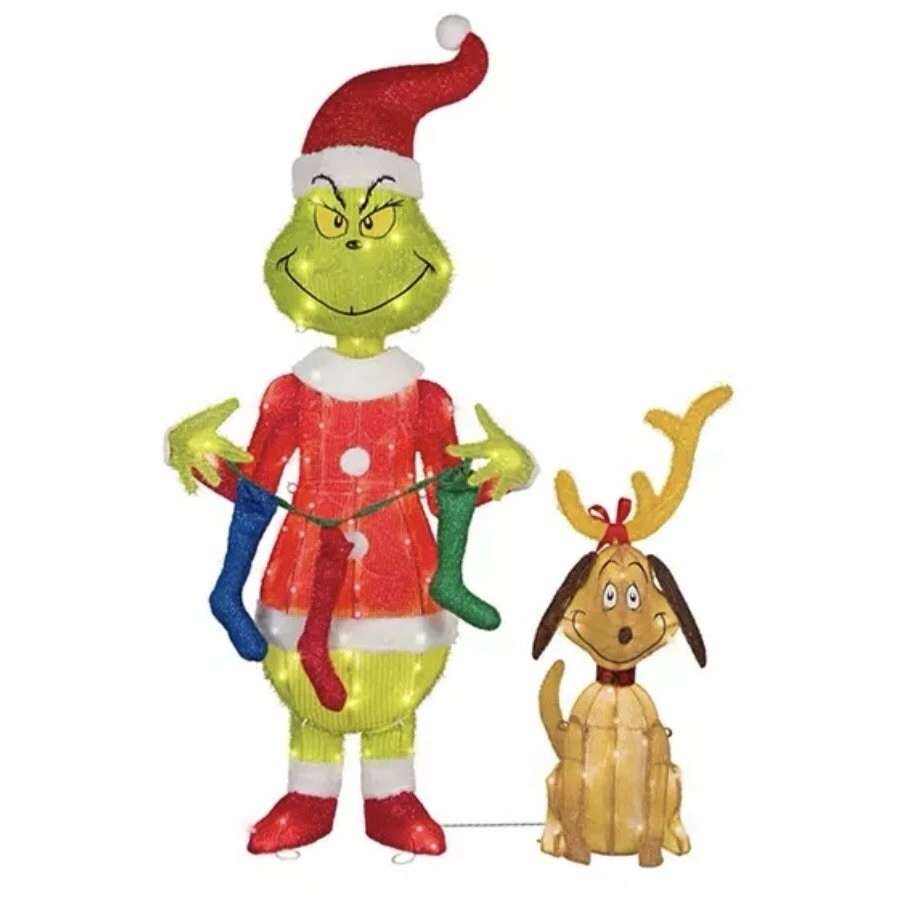 Grinch & Max 49" Christmas Lawn Decor LED Light Up Lawn Yard Art Sculpture NEW