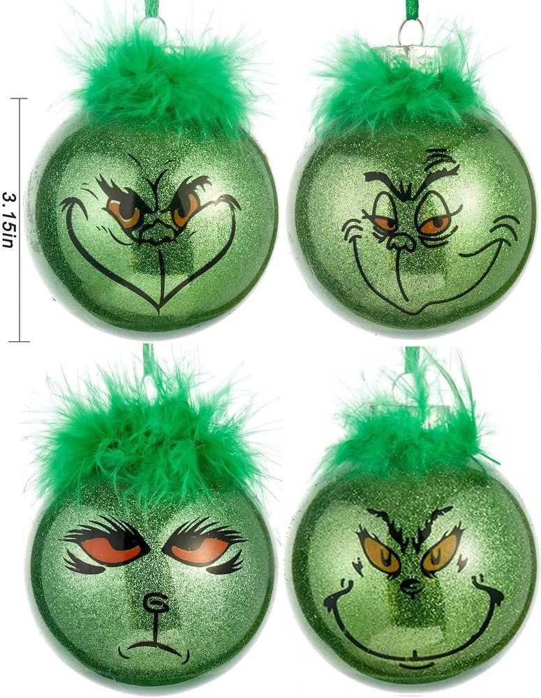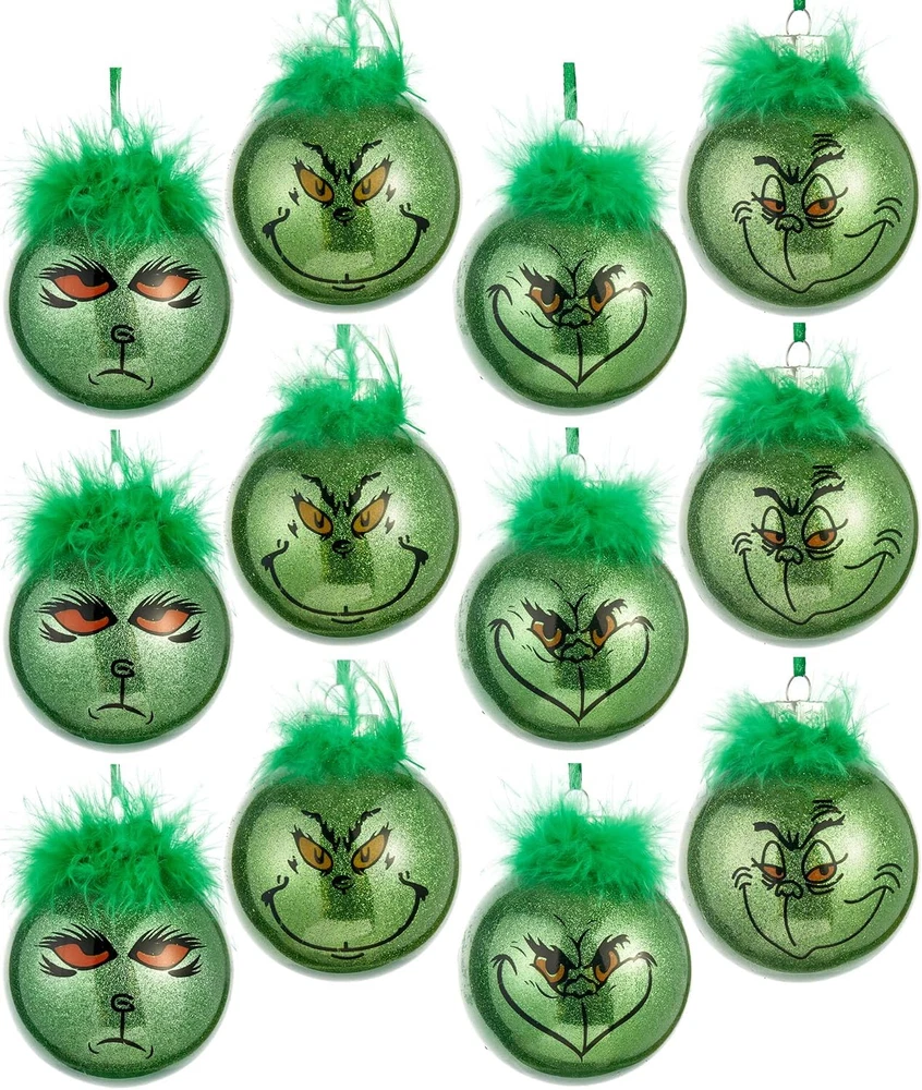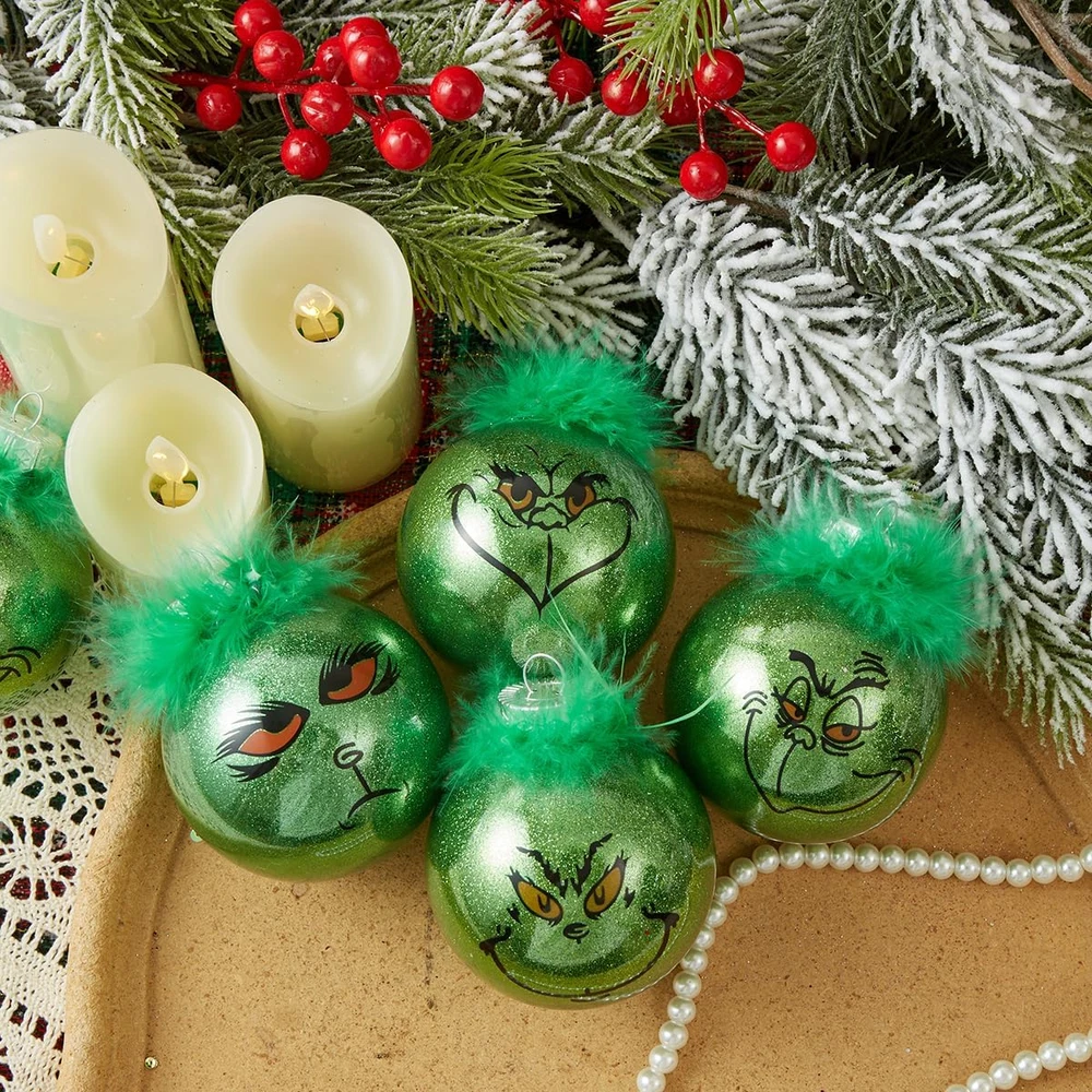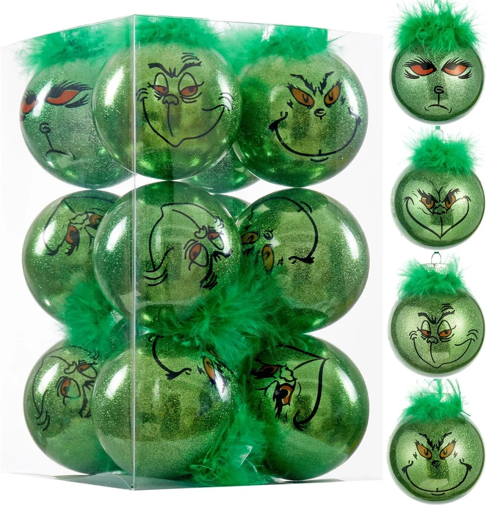 Grinchmas Christmas Ball Ornaments 12Pcs Plastic Elf Balls Hanging Decorations C