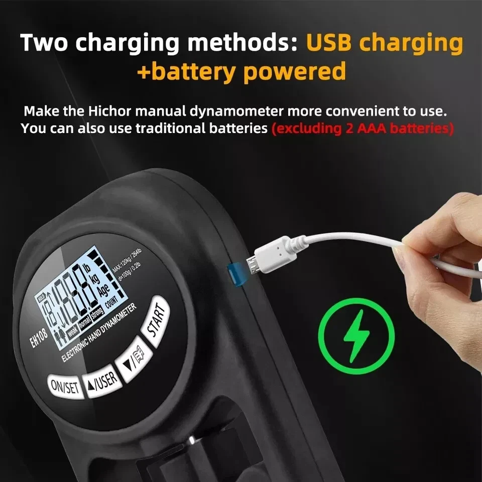 [Accurate Grip Strength Measurement, Up to 265lbs / 120kg] Equipped with a high-precision strain gauge sensor, this digital hand dynamometer provides accurate, real-time grip strength readings from 0 to 265lbs (120kg), with increments of 0.2lbs (0.1kg). This grip strength meter is ideal for physical therapists, occupational therapists, athletic trainers, chiropractors, and fitness enthusiasts. [User-Friendly & Adjustable Design] The easy-to-read LCD display on the handle and the lightweight design make this grip strength tester convenient and portable. Adjustable handles accommodate various hand sizes, making it suitable for both men and women. This modern grip trainer offers a more efficient alternative to traditional, hard-to-read manual models. [Durable Construction] Crafted from high-quality materials, this hand dynamometer is built to withstand regular use. Perfect for monitoring grip improvement from pull-up bars or pulley exercises, it’s an essential tool for tracking strength gains. [Memory Storage for Progress Tracking] With memory storage for up to 19 user profiles, this electronic grip strength tester keeps a record of each test, automatically displaying incremental increases or decreases for easy progress comparison over time. [Versatile Application] Grip strength testing is essential for athletes in sports like rock climbing, wrestling, and gymnastics. It’s also a significant health metric, widely applicable in sports training, clinical settings, and home use. Specifications: Color : Black Material : Durable plastic Power Supply : USB rechargeable, eco-friendly design Resolution : 0.1 kgf with ±0.5 kgf accuracy Package Includes: 1 x Electronic Grip Strength Tester 1 x USB Charging Cable Note: For accurate readings, hold the dynamometer firmly and position your hand comfortably.