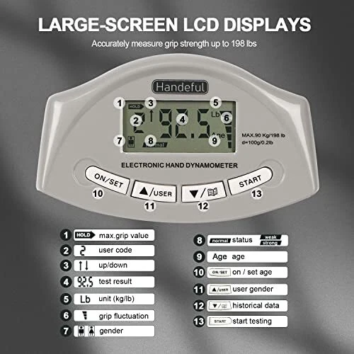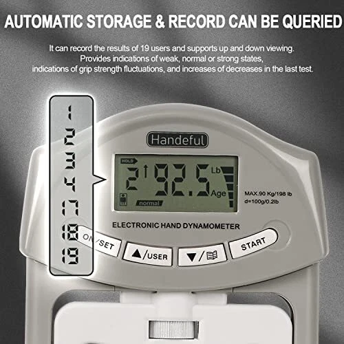 Return Policy Fast Delivery Trusted seller Grip Strength Tester Trainer - Dynamometer Handgrip Measurer Meter, Handheld Strengthener Exerciser for Sports, School, and Home Use (198Lbs / 90Kgs) Product Description [Accurate Measurement] - This hand Grip Strength Tester is equipped with a high-precision strain gauge sensor for accurately measuring Grip Strength up to 198 pounds with the division of 0.2lbs / 0.1kgs. 2* AAA batteries included; *Take note of the battery polarities when installing and replacing batteries. [Multiple Profile Tracking] This device is suitable for both youth and adult sports teams, as the device can store up to 19 user profiles, with complete age and gender information, so that t is no hinderance in tracking the progress of the individual and the team. [Multiple Profile Tracking] - Great for youth and adult sports teams, the compact Grip Strength Trainer Tester stores up to 19 user profiles complete with gender and age for easily tracking progress. The unit also recalls the last record Grip Strength Test for each profile and visibly indicates whether the current test shows an increase or a decrease in hand strength. [LCD Display] - Large LCD screen shows all measurements clearly on the same screen. Displayed measurements include user code, age, gender, grip value in pound or kg, and grip status. A maximum grip value display and weak, normal or strong power levels can be saved and easily recalled for comparison. [To know how stronger you are] - This is a perfect Digital Hand Dynamometer for physical therapists, occupational therapists, athletic trainers, chiropractors, and general practitioners. Grip Testing is necessary for sports such as rock climbing, wrestling and gymnastics, and it is also an important indicator of overall health. This Grip Strength Tester can be widely used in sports training, sports, family and clinical use. Shipping Returns Payment Shipping Shipping is FREE to all addresses other than APO/PO boxes in the lower 48 states. All our stock ships from US-based warehouses. Shipped via USPS or UPS (depending on location and package weight) Unless stated otherwise, all orders will ship within 24-72 hours of your payment being processed. Check our feedback to see the great reviews of FAST shipping we offer. Returns Seller does not accept returns Payment We currently accept payment via eBay managed payments only. Once payment is cleared, we will dispatch your shipment within 1-3 business days. Please refer to the "Shipping" tab for more information regarding shipping speed to your destination.