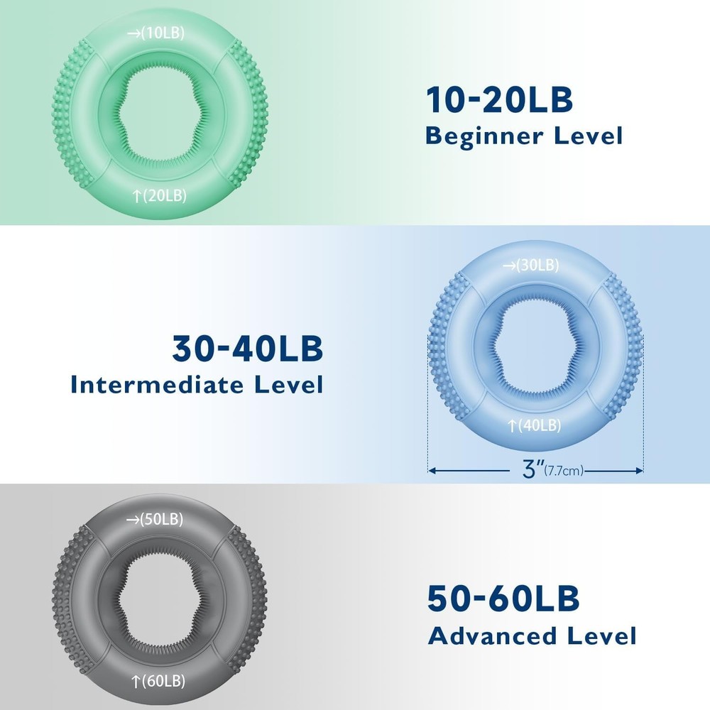 ๐จ๐น๐๐ถ๐บ๐ฎ๐๐ฒ ๐๐ฎ๐ป๐ฑ ๐ฅ๐ฒ๐ต๐ฎ๐ฏ ๐๐ถ๐: Ideal for anyone recovering from wrist fractures, arthritis, carpal tunnel, tendonitis, and more. This grip strength trainer set provides gentle resistance for easy hand exercises, accelerates recovery, and helps prevent future injuries. Excellent for office workers or anyone who uses their hands extensively, ensuring daily hand strength and flexibility. ๐ฅ๐ฒ๐๐ผ๐น๐๐๐ถ๐ผ๐ป๐ถ๐๐ฒ ๐ฌ๐ผ๐๐ฟ ๐๐ฟ๐ถ๐ฝ: Unlock the full potential of your grip with our forearm strengthener kit, designed for fitness enthusiasts seeking real results. Enhance your grip strength, improve finger dexterity, and reduce hand fatigue. This essential hand gripper strengthener toolkit provides lasting strength and precision, ideal for climbers, athletes, and professionals who need top-notch hand performance. ๐๐ผ๐ป๐ด-๐น๐ฎ๐๐๐ถ๐ป๐ด & ๐๐น๐ฒ๐ ๐ถ๐ฏ๐น๐ฒ ๐๐ฟ๐ถ๐ฝ ๐ฅ๐ถ๐ป๐ด๐: Advance your hand strength with our progressive hand gripper rings, offering adjustable resistance from a gentle 10-20LB to a tough 50-60LB. Each ring is made from premium food-grade silicone, ensuring lasting elasticity and shape retention. The non-slip textured surface provides a secure and comfortable grip. ๐จ๐ป๐ฏ๐ฟ๐ฒ๐ฎ๐ธ๐ฎ๐ฏ๐น๐ฒ ๐๐ถ๐ป๐ด๐ฒ๐ฟ ๐ฆ๐๐ฟ๐ฒ๐๐ฐ๐ต๐ฒ๐ฟ: Elevate your finger strength with our stretch bands, offering three distinct resistance levels: Soft (6.6LB), Medium (8.8LB), and Hard (11LB), each level represented by two bands to match your training needs. Designed for durability, these bands are high-stretch and break-resistant, perfect for intense workouts. The ergonomic design, with a 0.8-inch thumb hole and 0.67-inch finger holes, ensures a comfortable and secure fit for all-day use. ๐ฃ๐ผ๐ฟ๐๐ฎ๐ฏ๐น๐ฒ ๐๐ฟ๐ถ๐ฝ ๐ฆ๐๐ฟ๐ฒ๐ป๐ด๐๐ต ๐ง๐ฟ๐ฎ๐ถ๐ป๐ฒ๐ฟ: FITBEAST's hand strengthening devices is great for fitness on the go. Compact and easy to carry, whether you're at the office or outdoors, it's your ultimate portable workout companion. With a detailed instructional manual and tutorial guide, this set walks you through every exercise, from beginner to advanced grip training.
