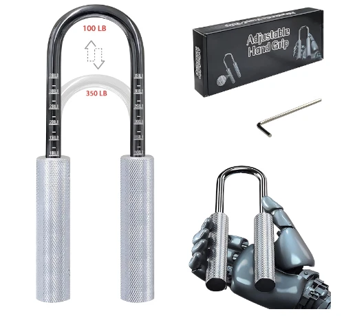Grip Strength Trainer Hand Grip Strengthener Adjustable Resistance Metal Grip... Free Fast Shipping Product Features 100-350lb Adjustable Gripper: Silver Aluminum Handle, High Carbon Steel Spring. 2cm (0.8in) Diameter Handle, 0.9cm (0.35in) Diameter Spring. Precise Laser Scale Markings. The First Professional Equipment For Training. 100lb-350lb Easily Adjustable. You Only Need A Grip. Instead Of 7 Different A Grippers. Premium Material: This Hand Gripper Of Ours Is Made Of High Carbon Stainless Steel, And After Strict Testing By The Manufacturer, This High Carbon Stainless Steel Material Is Extremely Durable And Not Easy To Rust! And We Will Check Every Product Carefully Before Shipping, We Can Guarantee That Every Product Customers Receive Is Perfect! Adjustable Resistance: The Adjustable Grip Strengthener Has Two Specifications, 110lb-280lb And 180lb And 400lb Respectively. You Can Choose The Corresponding Specifications According To Your Needs. It Is Very Suitable For Strengthening Hands, Forearms, Wrists And Fingers. It's Simple And Effective, And Helps Improve Grip, Injury Recovery, Stress Relief And Stamina. Perfect For Anyone Looking To Develop And Maintain Strong And Healthy Hands. Effective Rehabilitation Training: This Hand Grip Strengthener Is Great For Improving Strength And Flexibility In The Forearm, Wrist, Fingers, Hand And Muscles. Ideal For Recovery From Hand Injuries, Rheumatoid Arthritis, Arthritis, Carpal Tunnel, Tenosynovitis, Fractures, Wrist Fractures And Tendon Surgery. Ergonomic Design: For The Design Of The Whole Product, We Think It Is Very Good. It Is Designed Based On The Basis Of Ergonomics, And The Handle Adopts A Knurled Design, Which Can Effectively Increase The Resistance Of The Hand And The Handle. Don't Worry About It Slipping Out Of Your Hands! Whether You Are A Woman Or A Man, A Child Or An Adult, A Beginner Or A Seasoned Person, You Can Start Grip Training Anytime, Anywhere. Suitable For All Age Groups, Suitable For All Hand Types. 100% Shopping Satisfaction: Our Products Will Stand Behind The High Quality, And Our Service Is Very Good, Because We Always Insist On Putting The Customer First, If You Encounter Any Problems In The Process Of Buying And Using Feel Free To Contact Us At Any Time, We Will Reply Within 12 Hours And Solve Any Problem For You! Product Description Powerful, Durable And Easy To Use, The Adomove Grip Strength Trainer Will Be Your Best Training Partner And The Perfect Gift To Give To Family Or Friends Who Also Love Grip Training. 300-400 Adjustable Hand Grip Strengthener Logo About The Adomove Brand The Adomove Adjustable Hand Grip Strengthener Is Our Flagship Product, Made With Premium Materials And State-of-the-art Technology. Adomove Is A Brand Focused On Home Fitness Training, We Believe Exercise Should Be Fun, Effective, And Fit Your Busy Lifestyle, So We've Reimagined The Hand Grip Strengthener So You Can Get More Engaging And A More Productive Workout Experience Adomove Hand Grip Strengthener For People: Suitable For Big And Small Hands, Seniors And Teens. Resistance Levels Can Be Easily Adjusted To Gradually Increase The Intensity. Suitable For All Kinds Of Life Groups, Such As Rock Climbers, Tennis Players, Athletes, Musicians, Etc. Use This Product To Improve The Strength Of Your Hands, Fingers, Wrists, Elbows And Forearms. What Does Adomove Hand Grip Strengthener Package Include? 1 X Adjustable Hand Grip Strengthener (50-350lbs) 1 X Adjustment Wrench 1 X Storage Bag Color: Silver Material: Aluminum, Carbon Steel Style: Wrap Tension Level: Extra-heavy